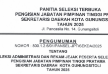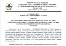 Info BKPSDMInformasi LainnyaPublikasi Lain Pengumuman Seleksi Pengadaan PPPK Di Lingkup Pemerintah Kota Gunungsitoli TA 2023 By Dinas Komunikasi dan Informatika - September 16, 2023 3938 0 FacebookTwitterWhatsAppPinterestTelegramPrint Pengumuman Seleksi Pengadaan PPPK Di Lingkup Pemerintah Kota Gunungsitoli TA 2023 PENGUMUMAN_SELEKSI_PPPK_DI_LINGKUNGAN_PEMERINTAH_KOTA_GUNUNGSITOLI-1Unduh RELATED ARTICLESMORE FROM AUTHOR BPKPD Pengumuman Tentang Hasil Seleksi Administrasi dan Rekam Jejak Peserta Seleksi Terbuka Pengisian JPTP Sekda Kota Gunungsitoli Tahun 2025 BKPSDM Pengumuman Nama 3 Besar Hasil Seleksi JPT Kota Gunungsitoli Tahun 2025 BKPSDM Pengumuman Hasil Penilaian Kompetensi Manajerial dan Sosial Kultural Peserta Seleksi Terbuka Pengisian JPTP Lingkup Pemko Gunungsitoli Tahun 2025 LEAVE A REPLY Cancel reply Please enter your comment! Please enter your name here You have entered an incorrect email address! Please enter your email address here Save my name, email, and website in this browser for the next time I comment. Δ