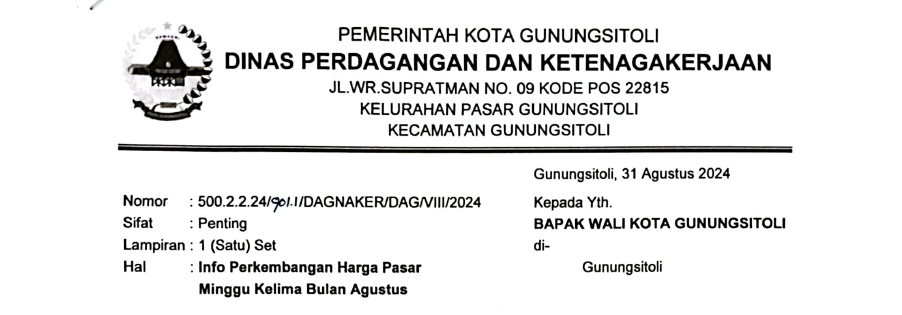 Info DagnakerPerangkat Daerah Perkembangan Harga Pasar Minggu Kelima Bulan Agustus By Dinas Komunikasi dan Informatika - August 31, 2024 63 0 FacebookTwitterWhatsAppPinterestTelegramPrint info pasar minggu kelima bulan agustus 2024Unduh RELATED ARTICLESMORE FROM AUTHOR Info Setwan AKSI DAMAI PERCEPATAN PEMBENTUKAN PROVINSI KEPULAUAN NIAS DIGELAR DI DPRD KOTA GUNUNGSITOLI TAHUN 2025 Info Setwan Profil Pimpinan DPRD Periode Tahun 2024-2029 Kota Gunungsitoli Dokumen Siap Cetak Dokumen Kependudukan dan Pencatatan Sipil Siap Cetak per Tanggal 6 Oktober 2025 LEAVE A REPLY Cancel reply Please enter your comment! Please enter your name here You have entered an incorrect email address! Please enter your email address here Save my name, email, and website in this browser for the next time I comment. Δ