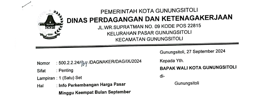 Info DagnakerPerangkat Daerah Perkembangan Harga Pasar Minggu Keempat Bulan September By Dinas Komunikasi dan Informatika - September 28, 2024 71 0 FacebookTwitterWhatsAppPinterestTelegramPrint info pasar minggu keempat bulan September 2024Unduh RELATED ARTICLESMORE FROM AUTHOR Info Setwan AKSI DAMAI PERCEPATAN PEMBENTUKAN PROVINSI KEPULAUAN NIAS DIGELAR DI DPRD KOTA GUNUNGSITOLI TAHUN 2025 Info Setwan Profil Pimpinan DPRD Periode Tahun 2024-2029 Kota Gunungsitoli Dokumen Siap Cetak Dokumen Kependudukan dan Pencatatan Sipil Siap Cetak per Tanggal 6 Oktober 2025 LEAVE A REPLY Cancel reply Please enter your comment! Please enter your name here You have entered an incorrect email address! Please enter your email address here Save my name, email, and website in this browser for the next time I comment. Δ
