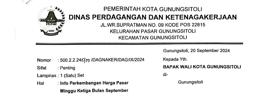 Info DagnakerPerangkat Daerah Perkembangan Harga Pasar Minggu Ketiga Bulan September By Dinas Komunikasi dan Informatika - September 21, 2024 72 0 FacebookTwitterWhatsAppPinterestTelegramPrint info pasar minggu ketiga bulan September 2024Unduh RELATED ARTICLESMORE FROM AUTHOR Info Setwan AKSI DAMAI PERCEPATAN PEMBENTUKAN PROVINSI KEPULAUAN NIAS DIGELAR DI DPRD KOTA GUNUNGSITOLI TAHUN 2025 Info Setwan Profil Pimpinan DPRD Periode Tahun 2024-2029 Kota Gunungsitoli Dokumen Siap Cetak Dokumen Kependudukan dan Pencatatan Sipil Siap Cetak per Tanggal 6 Oktober 2025 LEAVE A REPLY Cancel reply Please enter your comment! Please enter your name here You have entered an incorrect email address! Please enter your email address here Save my name, email, and website in this browser for the next time I comment. Δ