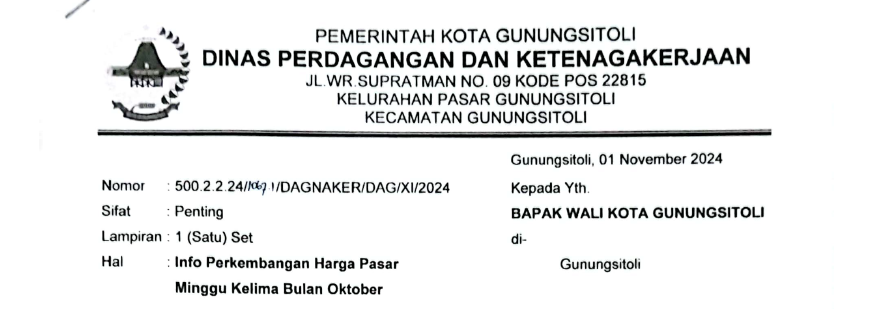 Info DagnakerPerangkat Daerah Perkembangan Harga Pasar Minggu Kelima Bulan Oktober By Dinas Komunikasi dan Informatika - November 3, 2024 43 0 FacebookTwitterWhatsAppPinterestTelegramPrint info pasar minggu kelima bulan Oktober 2024Unduh RELATED ARTICLESMORE FROM AUTHOR Info Setwan AKSI DAMAI PERCEPATAN PEMBENTUKAN PROVINSI KEPULAUAN NIAS DIGELAR DI DPRD KOTA GUNUNGSITOLI TAHUN 2025 Info Setwan Profil Pimpinan DPRD Periode Tahun 2024-2029 Kota Gunungsitoli Dokumen Siap Cetak Dokumen Kependudukan dan Pencatatan Sipil Siap Cetak per Tanggal 6 Oktober 2025 LEAVE A REPLY Cancel reply Please enter your comment! Please enter your name here You have entered an incorrect email address! Please enter your email address here Save my name, email, and website in this browser for the next time I comment. Δ