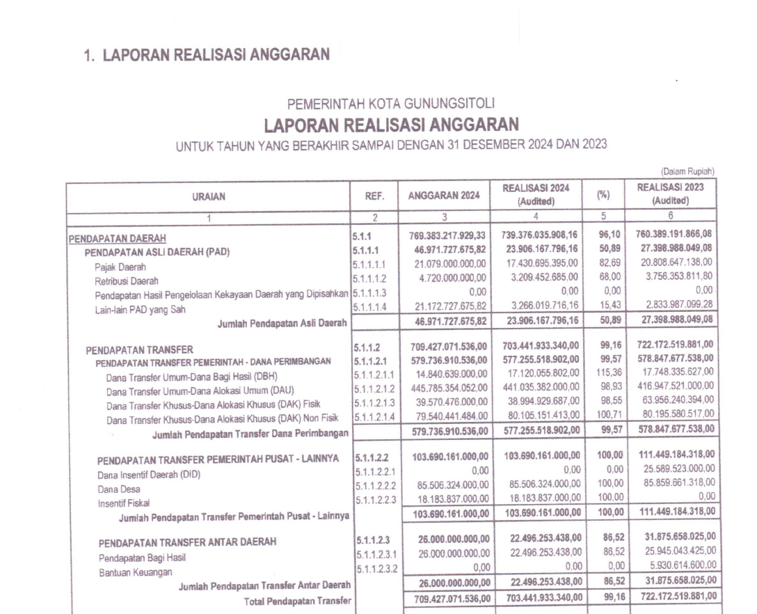 BappelitbangInfo Bappelitbang Laporan Keuangan Pemerintah Kota Gunungsitoli Tahun 2024 By Dinas Komunikasi dan Informatika - January 6, 2025 54 0 FacebookTwitterWhatsAppPinterestTelegramPrint 10. LK Pemko Gunungsitoli Audited T.A. 2024Download h. Calk Kota GUNUNGSITOLI 2024-AuditedDownload RELATED ARTICLESMORE FROM AUTHOR Bappelitbang PERATURAN DAERAH KOTA GUNUNGSITOLI NOMOR 3 TAHUN 2025 TENTANG PERTANGGUNGJAWABAN PELAKSANAAN ANGGARAN PENDAPATAN DAN BELANJA DAERAH TAHUN ANGGARAN 2024 Bappelitbang OPINI BPK ATAS LKPD PEMERINTAH KOTA GUNUNGSITOLI TAHUN 2024 Bappelitbang DOKUMEN LAPORAN AKUNTABILITAS DAN KINERJA TAHUNAN PEMERINTAH DAERAH TAHUN 2024 LEAVE A REPLY Cancel reply Please enter your comment! Please enter your name here You have entered an incorrect email address! Please enter your email address here Save my name, email, and website in this browser for the next time I comment. Δ