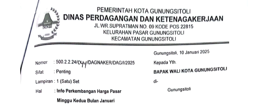 Info DagnakerPerangkat Daerah Perkembangan Harga Pasar Minggu Kedua Bulan Januari By Dinas Komunikasi dan Informatika - January 11, 2025 39 0 FacebookTwitterWhatsAppPinterestTelegramPrint Info Perkembangan Harga Pasar Minggu kedua bulan Januari 2025Unduh RELATED ARTICLESMORE FROM AUTHOR Info Setwan AKSI DAMAI PERCEPATAN PEMBENTUKAN PROVINSI KEPULAUAN NIAS DIGELAR DI DPRD KOTA GUNUNGSITOLI TAHUN 2025 Info Setwan Profil Pimpinan DPRD Periode Tahun 2024-2029 Kota Gunungsitoli Dokumen Siap Cetak Dokumen Kependudukan dan Pencatatan Sipil Siap Cetak per Tanggal 6 Oktober 2025 LEAVE A REPLY Cancel reply Please enter your comment! Please enter your name here You have entered an incorrect email address! Please enter your email address here Save my name, email, and website in this browser for the next time I comment. Δ