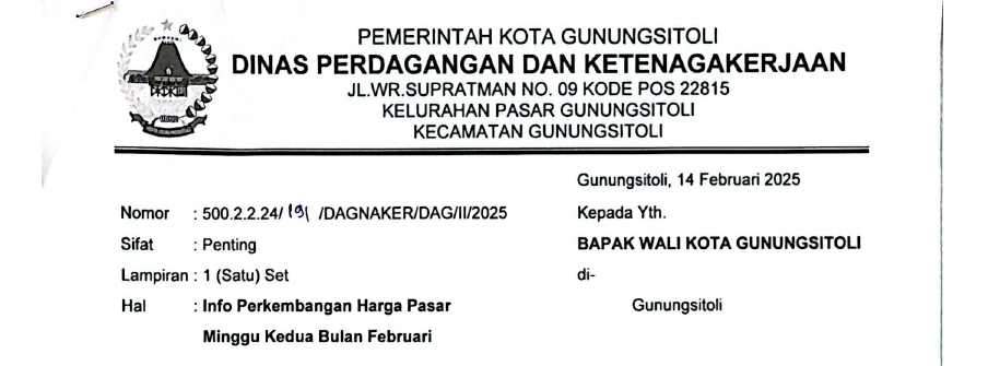 Info DagnakerPerangkat Daerah Perkembangan Harga Pasar Minggu Kedua Bulan Februari By Dinas Komunikasi dan Informatika - February 14, 2025 61 0 FacebookTwitterWhatsAppPinterestTelegramPrint MINGGU KEDUA FEBRUARI 2025Unduh RELATED ARTICLESMORE FROM AUTHOR Info Setwan AKSI DAMAI PERCEPATAN PEMBENTUKAN PROVINSI KEPULAUAN NIAS DIGELAR DI DPRD KOTA GUNUNGSITOLI TAHUN 2025 Info Setwan Profil Pimpinan DPRD Periode Tahun 2024-2029 Kota Gunungsitoli Dokumen Siap Cetak Dokumen Kependudukan dan Pencatatan Sipil Siap Cetak per Tanggal 6 Oktober 2025 LEAVE A REPLY Cancel reply Please enter your comment! Please enter your name here You have entered an incorrect email address! Please enter your email address here Save my name, email, and website in this browser for the next time I comment. Δ