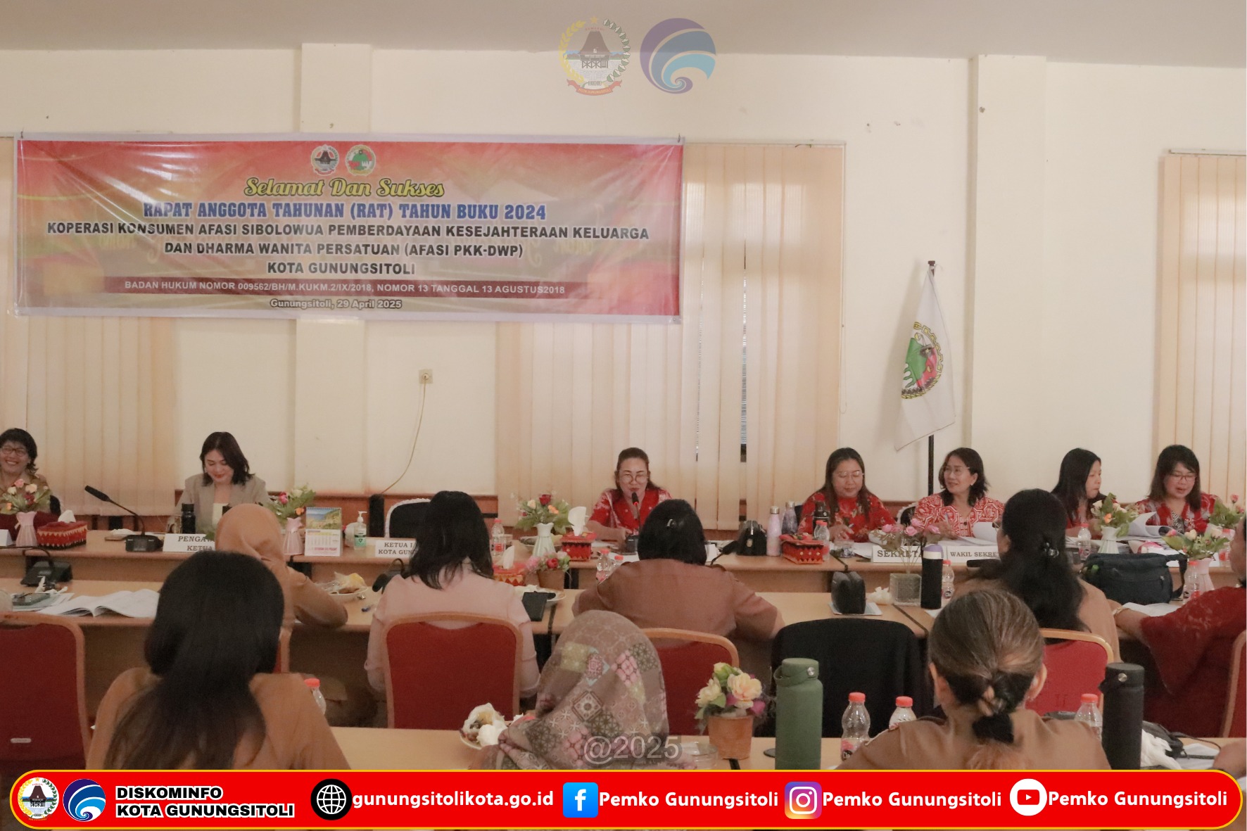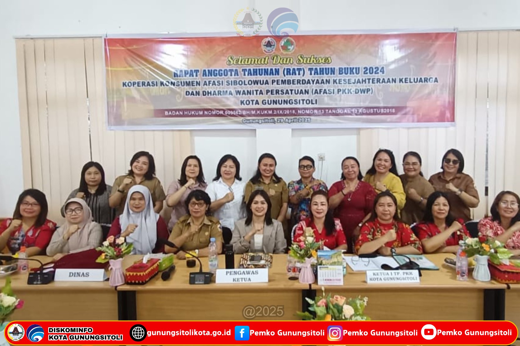 Gunungsitoli (29/04/2025) Koperasi Konsumen Afasi Sibolowua PKK-DWP Kota Gunungsitoli melaksanakan RAT Tahun Buku 2025 yang ke VII di Ruang Rapat Lantai I Kantor Wali Kota Gunungsitoli, Selasa (29/04/2025).