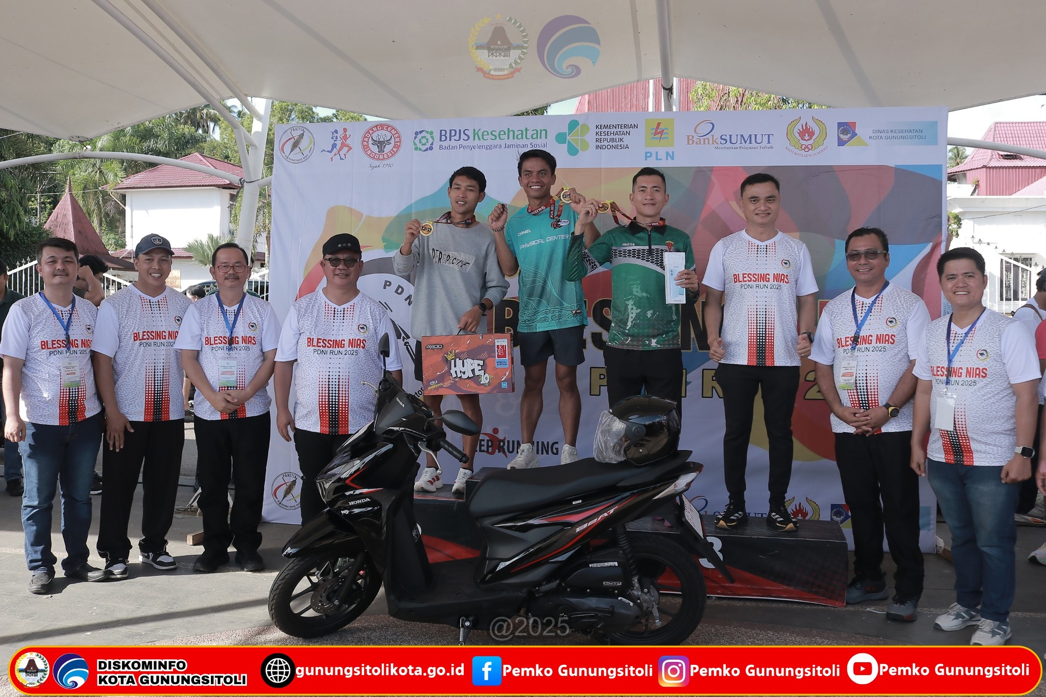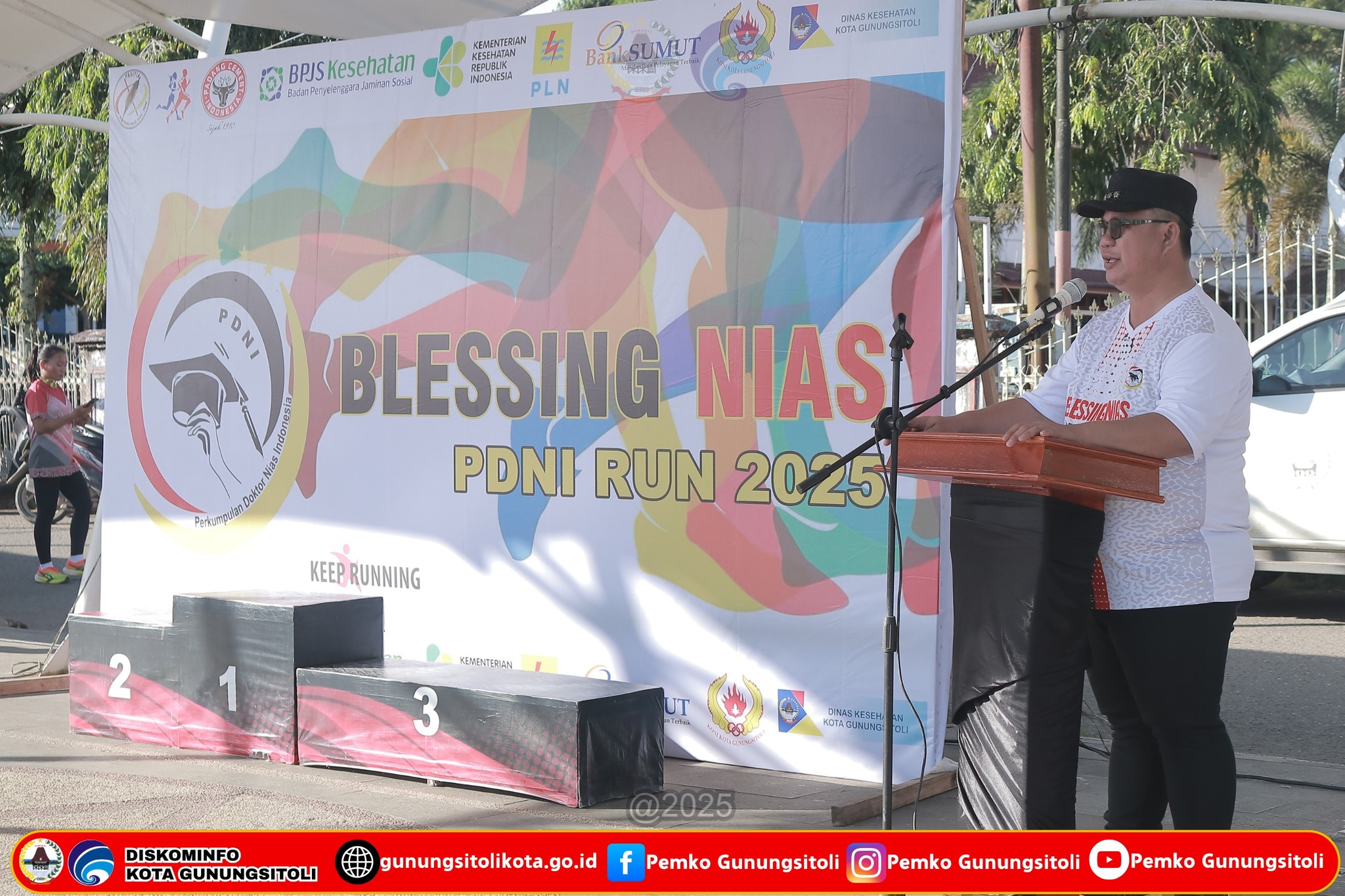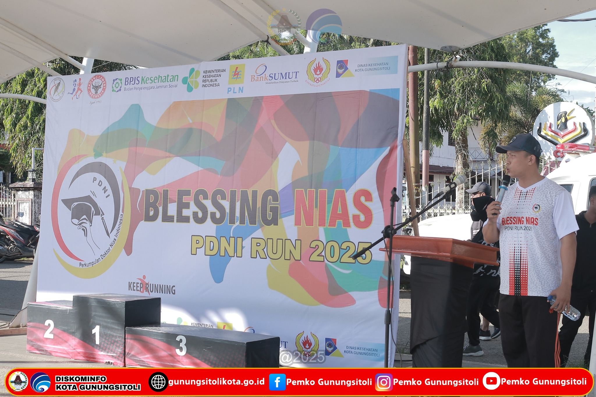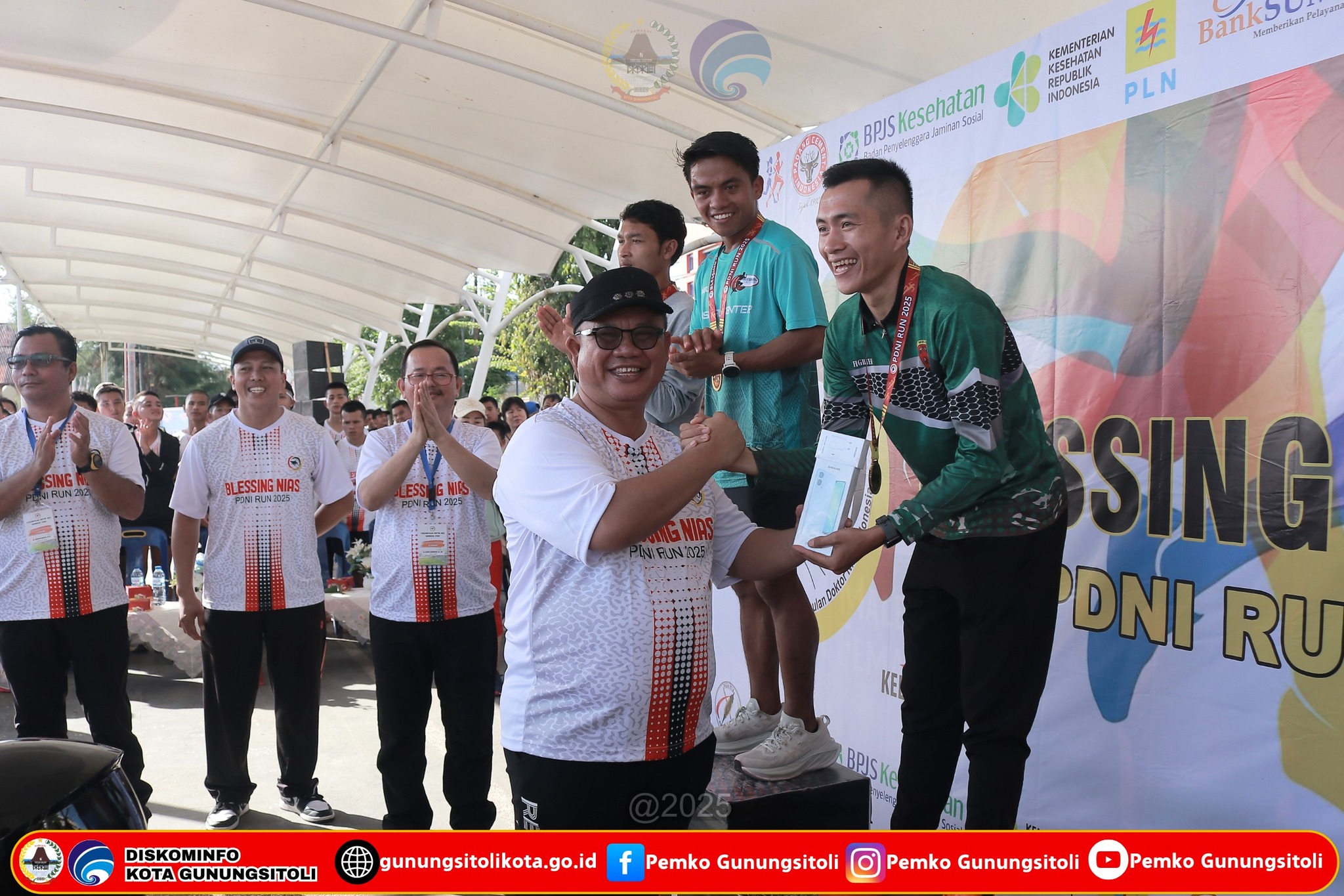 Gunungsitoli (04/05/2025) Wali Kota Gunungsitoli, Sowa’a Laoli, S.E., M.Si, menghadiri sekaligus membuka kegiatan PDNI Run Blessing 2025 yang diselenggarakan oleh Perkumpulan Doktor Nias Indonesia (PDNI), bertempat di Alun Alun Kota Gunungsitoli, Minggu (04/05/2025).