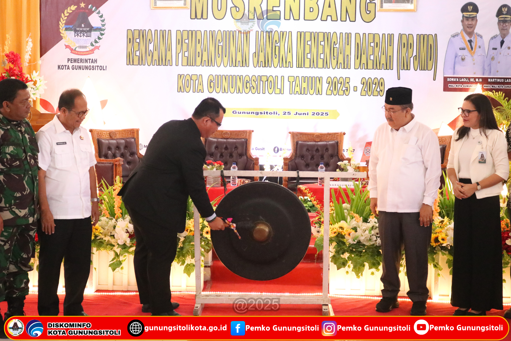 Gunungsitoli (25/06/2025) Pemerintah Kota Gunungsitoli menggelar Musyawarah Perencanaan Pembangunan (Musrenbang) Rencana Pembangunan Jangka Menengah Daerah (RPJMD) Kota Gunungsitoli 2025-2029. Acara dibuka secara resmi oleh Wali Kota Gunungsitoli Sowa’a Laoli, S.E., M.Si bersama Wakil Wali Kota Gunungsitoli Martinus Lase, S. H, bertempat di Ruang Rapat II Kantor Wali Kota Gunungsitoli, Rabu 25 Juni 2025.