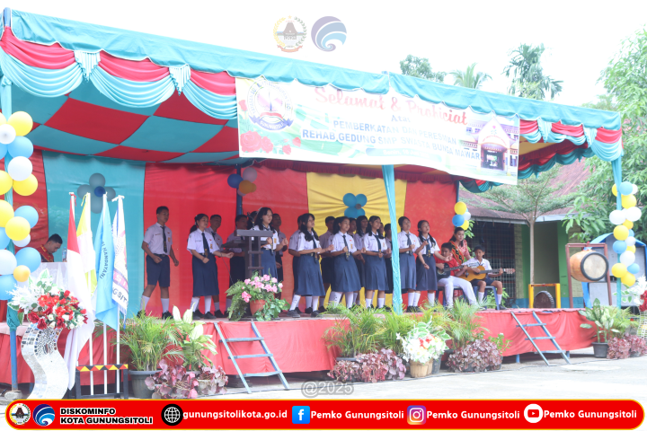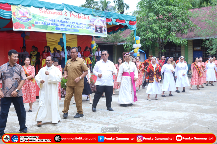 Gunungsitoli (16/05/2025) Wali Kota Gunungsitoli didampingi Kepala Dinas Pendidikan Kota Gunungsitoli hadiri Peresmian Rehab Gedung Sekolah SMP Swasta Bunga Mawar Kota Gunungsitoli. Peresmian ditandai dengan penandatanganan prasasti oleh Wali Kota Gunungsitoli Sowa’a Laoli, S.E., M.Si, Senin, 16 Juni 2025.