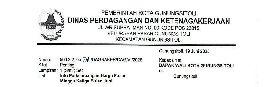 Info DagnakerPerangkat Daerah Perkembangan Harga Pasar Minggu Ketiga Bulan Juni By Dinas Komunikasi dan Informatika - June 20, 2025 2172 0 FacebookTwitterWhatsAppPinterestTelegramPrint Info Perkembangan Harga Pasar Minggu Ketiga Bulan JuniUnduh RELATED ARTICLESMORE FROM AUTHOR Info Setwan AKSI DAMAI PERCEPATAN PEMBENTUKAN PROVINSI KEPULAUAN NIAS DIGELAR DI DPRD KOTA GUNUNGSITOLI TAHUN 2025 Info Setwan Profil Pimpinan DPRD Periode Tahun 2024-2029 Kota Gunungsitoli Dokumen Siap Cetak Dokumen Kependudukan dan Pencatatan Sipil Siap Cetak per Tanggal 6 Oktober 2025 LEAVE A REPLY Cancel reply Please enter your comment! Please enter your name here You have entered an incorrect email address! Please enter your email address here Save my name, email, and website in this browser for the next time I comment. Δ