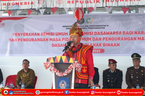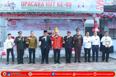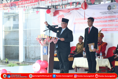 Gunungsitoli (21/08/2025) Pada upacara peringatan HUT ke-80 Kemerdekaan Republik Indonesia yang dirangkaikan dengan pemberian remisi umum bagi narapidana dan anak binaan, Wali Kota Gunungsitoli Sowa’a Laoli, S.E., M.Si membacakan sambutan Menteri Imigrasi dan Pemasyarakatan Republik Indonesia, bertempat di Lapas Kelas II B Gunungsitoli, Minggu (17/08/25).