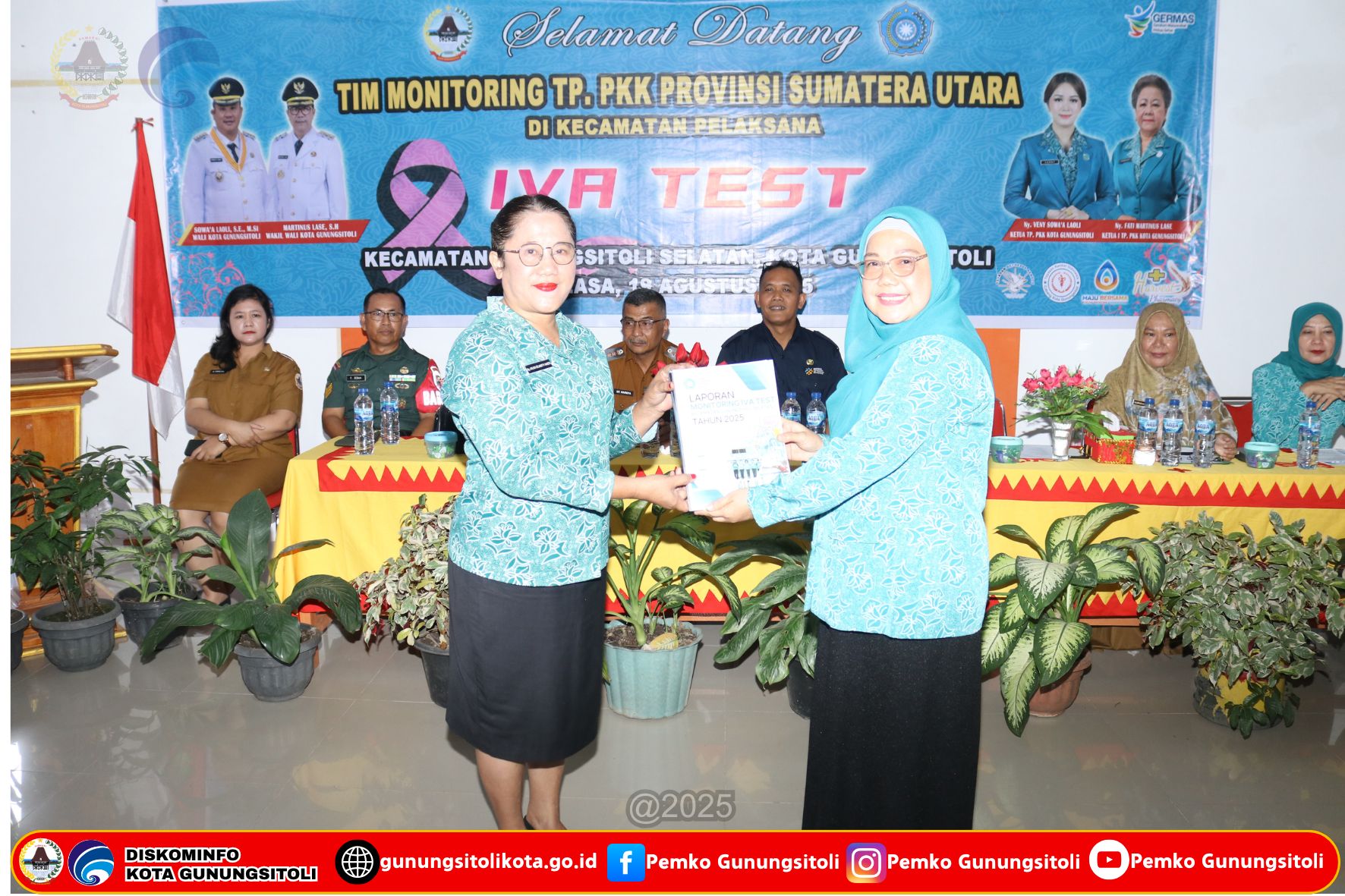 Gunungsitoli (22/08/2025), Wali kota Gunungsitoli yang diwakili oleh Kepala Dinas Pengendalian Penduduk, Pemberdayaan Perempuan, dan Perlindungan Anak Wilser J. Napitupulu, S.Si, Apt, MPH dalam kegiatan monitoring TP. PKK Provinsi Sumatera Utara dalam rangka lomba Iva Test di Kecamatan Gunungsitoli Selatan yang dilaksanakan di UPTD Puskesmas Gunungsitoli Selatan, Selasa (19/08/2025).