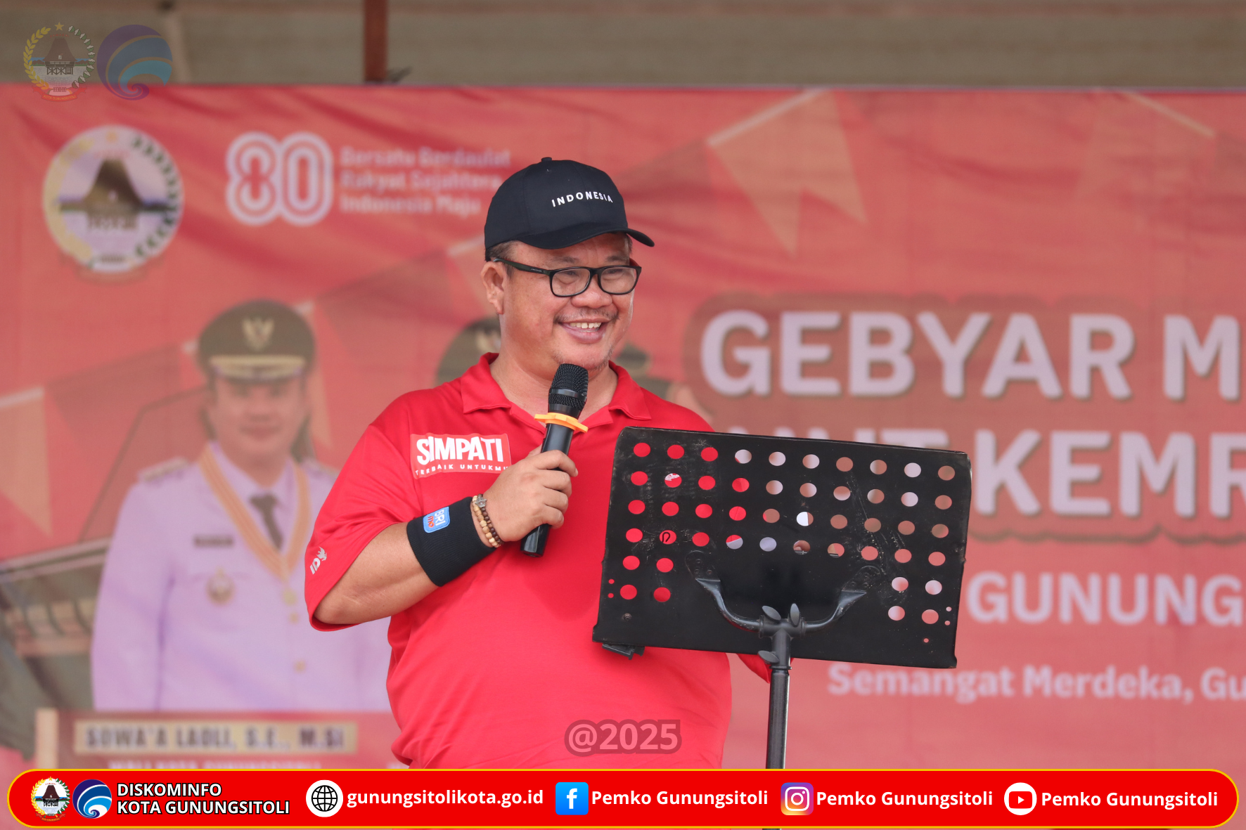 Gunungsitoli (21/08/2025), Wali Kota Gunungsitoli, Sowa’a Laoli, S.E., M.Si., didampingi Pj. Sekretaris Daerah Kota Gunungsitoli Meiman Kristian Harefa, S.Sos.,MSP., dan Vice President – Consumer Business Area Sumatera Telkomsel Bapak Mulya Budiman secara resmi melepas peserta jalan santai dalam rangka memeriahkan Hari Ulang Tahun ke-80 Kemerdekaan Republik Indonesia Tahun 2025 yang digelar di Taman Ya’ahowu Kota Gunungsitoli, Sabtu (16/08/2025).