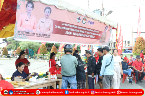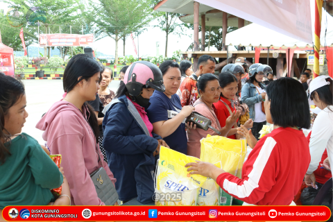 Gunungsitoli (21/08/2025), Wali Kota Gunungsitoli, Sowa’a Laoli, S.E., M.Si., didampingi Pj. Sekretaris Daerah Kota Gunungsitoli Meiman Kristian Harefa, S.Sos., MSP., dan Vice President – Consumer Business Area Sumatera Telkomsel Bapak Mulya Budiman melaksanakan peninjauan kegiatan Gerakan Pangan Murah Dharma Wanita Persatuan Kota Gunungsitoli dalam rangka memeriahkan Hari Ulang Tahun ke-80 Kemerdekaan Republik Indonesia Tahun 2025 yang digelar di Taman Ya’ahowu Kota Gunungsitoli, Sabtu (16/08/2025).