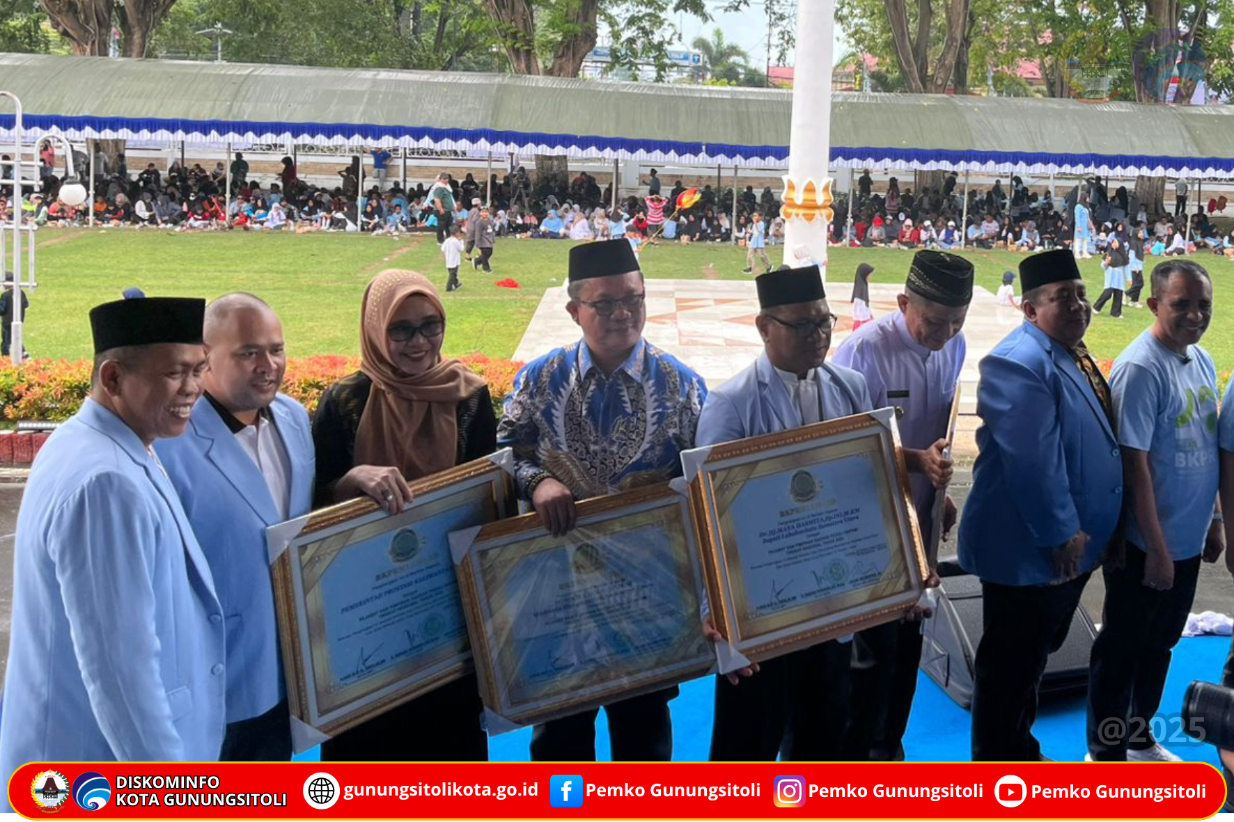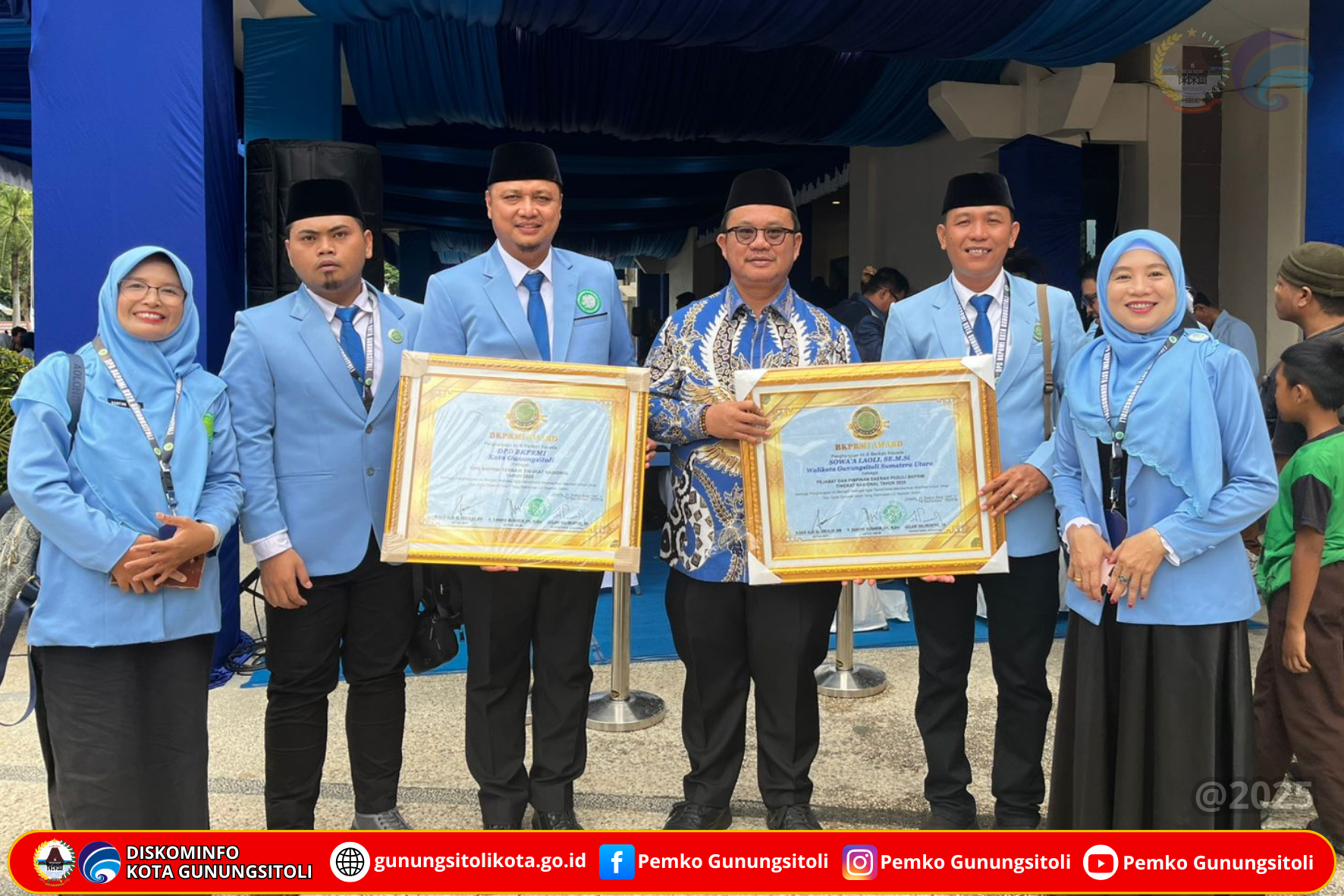 Gunungsitoli (15/09/2025) Wali Kota Gunungsitoli, Sowa’a Laoli, S.E., M.Si., menerima Anugerah BKPRMI Award Tahun 2025 dari Dewan Pengurus Pusat Badan Komunikasi Pemuda Remaja Masjid Indonesia (BKPRMI). Penghargaan ini diserahkan langsung oleh Tim Penilai BKPRMI Award 2025 pada acara yang berlangsung di Gedung Pogombo, Kantor Gubernur Sulawesi Tengah, Minggu (14/09/2025).