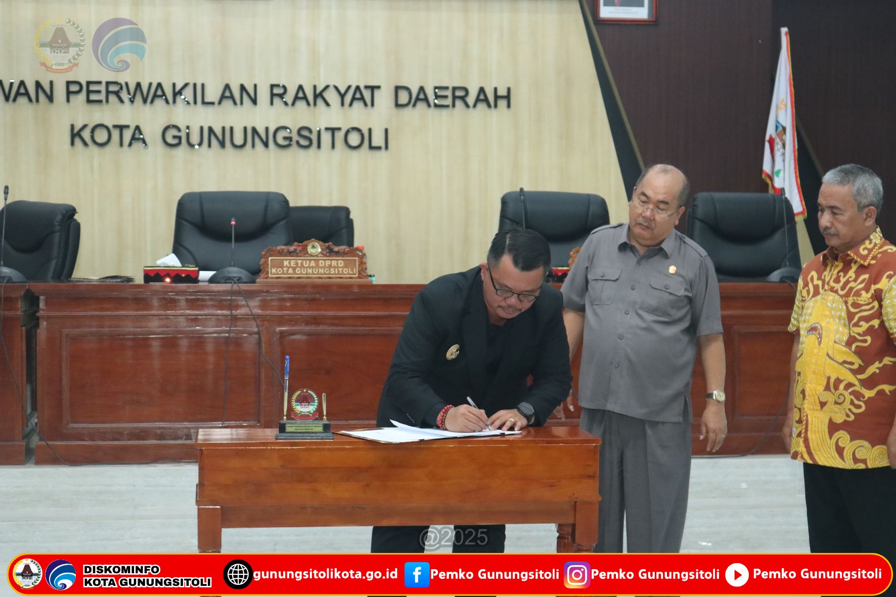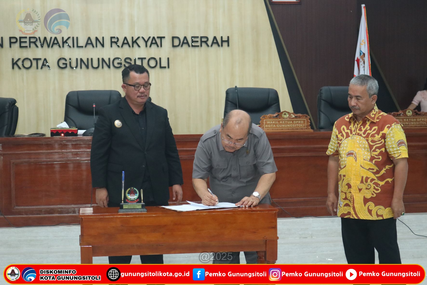Rapat Paripurna DPRD Kota Gunungsitoli ini kemudian ditutup dengan penandatanganan persetujuan bersama antara DPRD Kota Gunungsitoli dan Pemerintah Kota Gunungsitoli terhadap Rancangan Peraturan Daerah Kota Gunungsitoli tentang Perubahan APBD Kota Gunungsitoli Tahun Anggaran 2025.