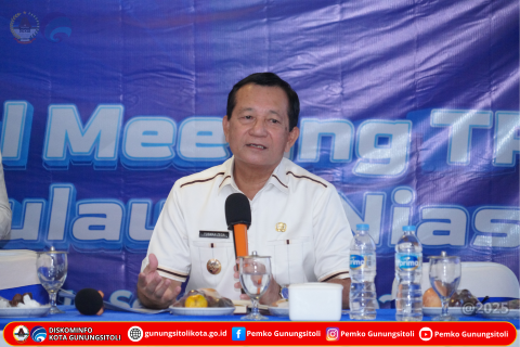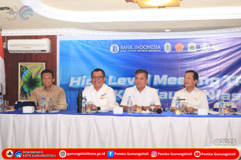 Gunungsitoli (12/09/2025) Wali Kota Gunungsitoli Sowa’a Laoli, S.E., M.Si. menyampaikan sambutannya pada kegiatan High Level Meeting (HLM) Tim Pengendalian Inflasi Daerah (TPID) se-Kepulauan Nias yang diselenggarakan oleh Kantor Perwakilan Bank Indonesia Sibolga dengan tema “Sinergi dan Inovasi untuk Ketahanan Pangan: Stabilisasi Harga dan Ketersediaan Pasokan di Kepulauan Nias”., bertempat di Meeting Room Wisma Soliga Kota Gunungsitoli, Rabu (10/09/25)
