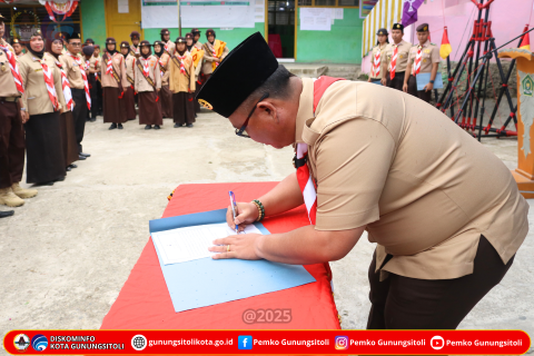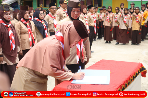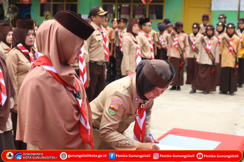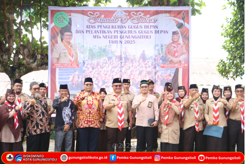 Gunungsitoli, (24/09/2025) Wali Kota Gunungsitoli, Sowa’a Laoli, S.E., M.Si., selaku Ketua Kwartir Cabang (Kwarcab) Gerakan Pramuka Kota Gunungsitoli, secara resmi mengukuhkan Gugus Depan (Gudep) Pramuka Penggalang di MTs Negeri Gunungsitoli. Prosesi pengukuhan berlangsung khidmat dan penuh semangat di lapangan upacara sekolah MTs Negeri Gunungsitoli, Rabu (24/09/2025).