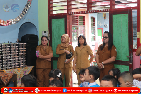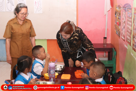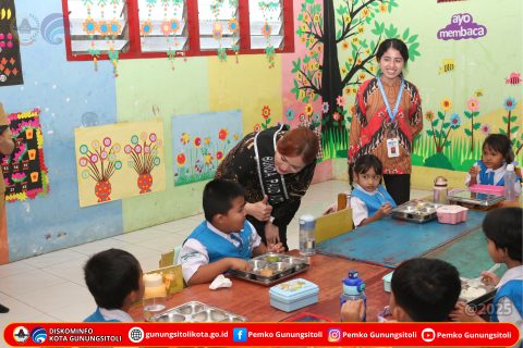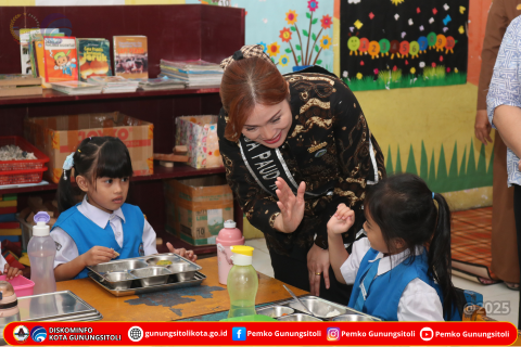 Gunungsitoli (20/10/2025) — Bunda PAUD Kota Gunungsitoli, Ny. Veny Sowa’a Laoli, didampingi Kepala Dinas Pendidikan Kota Gunungsitoli, Drs. Arham Dusky Hia, M.Si., melaksanakan monitoring Program Makanan Bergizi Gratis (MBG) di TK Negeri Pembina 1 Gunungsitoli, Senin (20/10/2025).