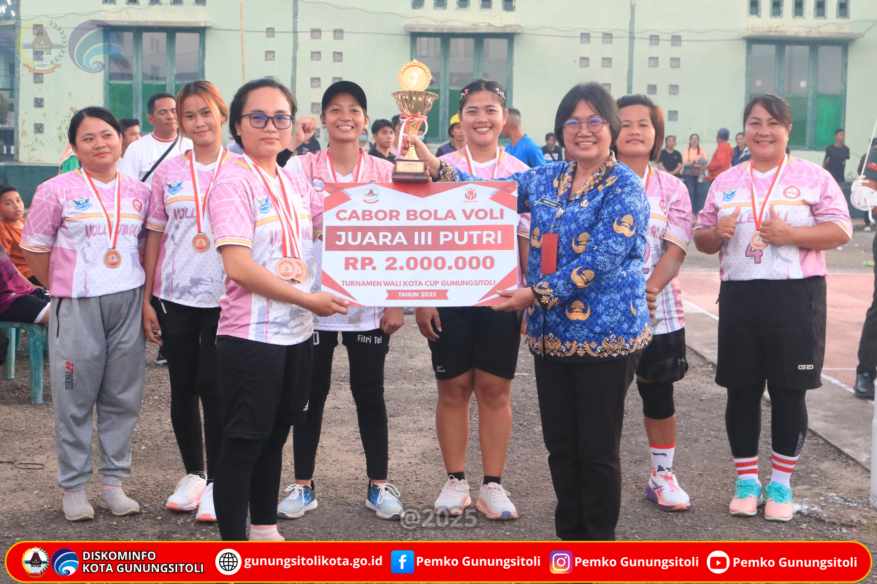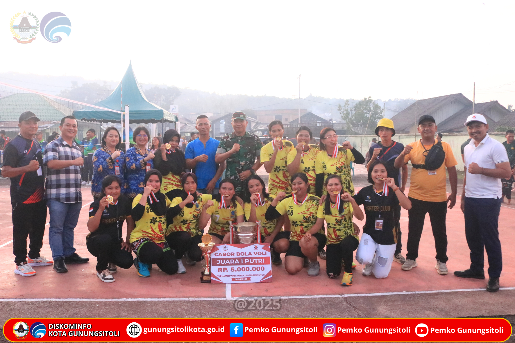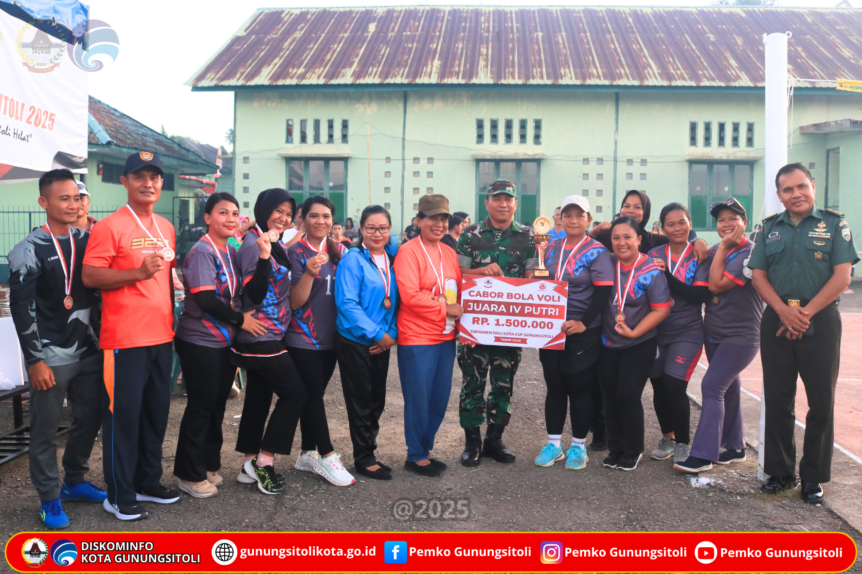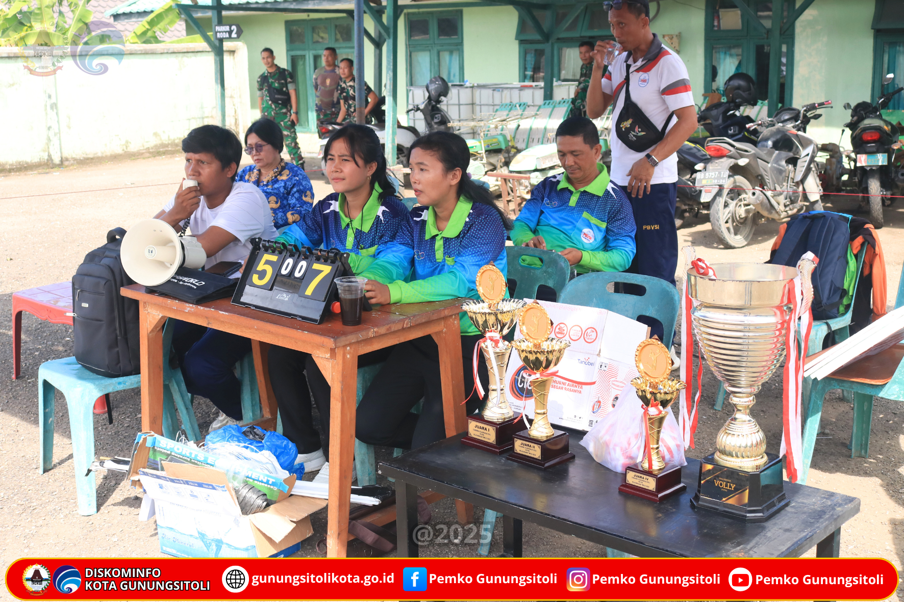 Gunungsitoli (28/10/2025) Dandim 0213/Nias Letkol Inf Sampe T. Butar Butar mewakili Wali Kota Gunungsitoli menyerahkan hadiah kepada para pemenang Turnamen Wali Kota Gunungsitoli Cup Tahun 2025 cabang olahraga bola voli putri yang berlangsung di Lapangan Makodim 0213/Nias, Senin (28/10/2025).