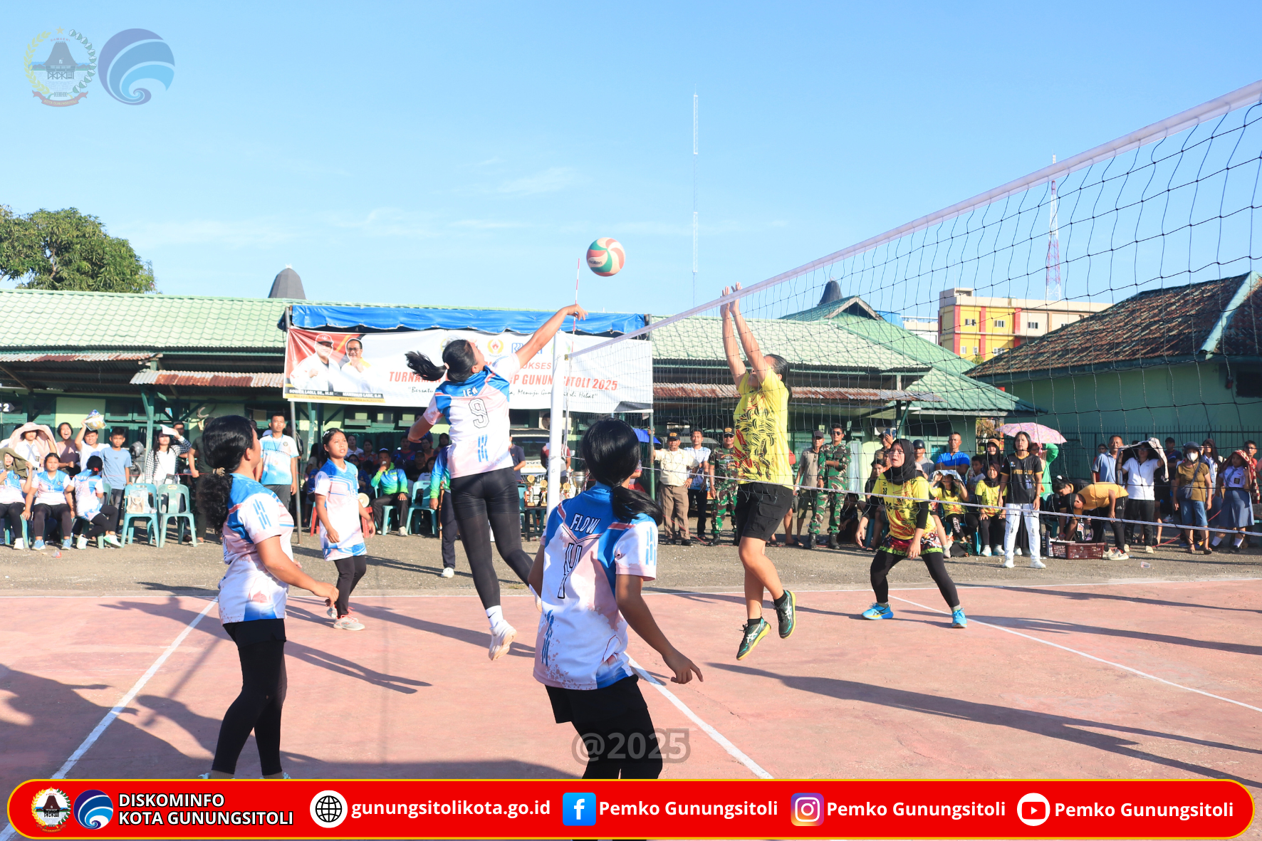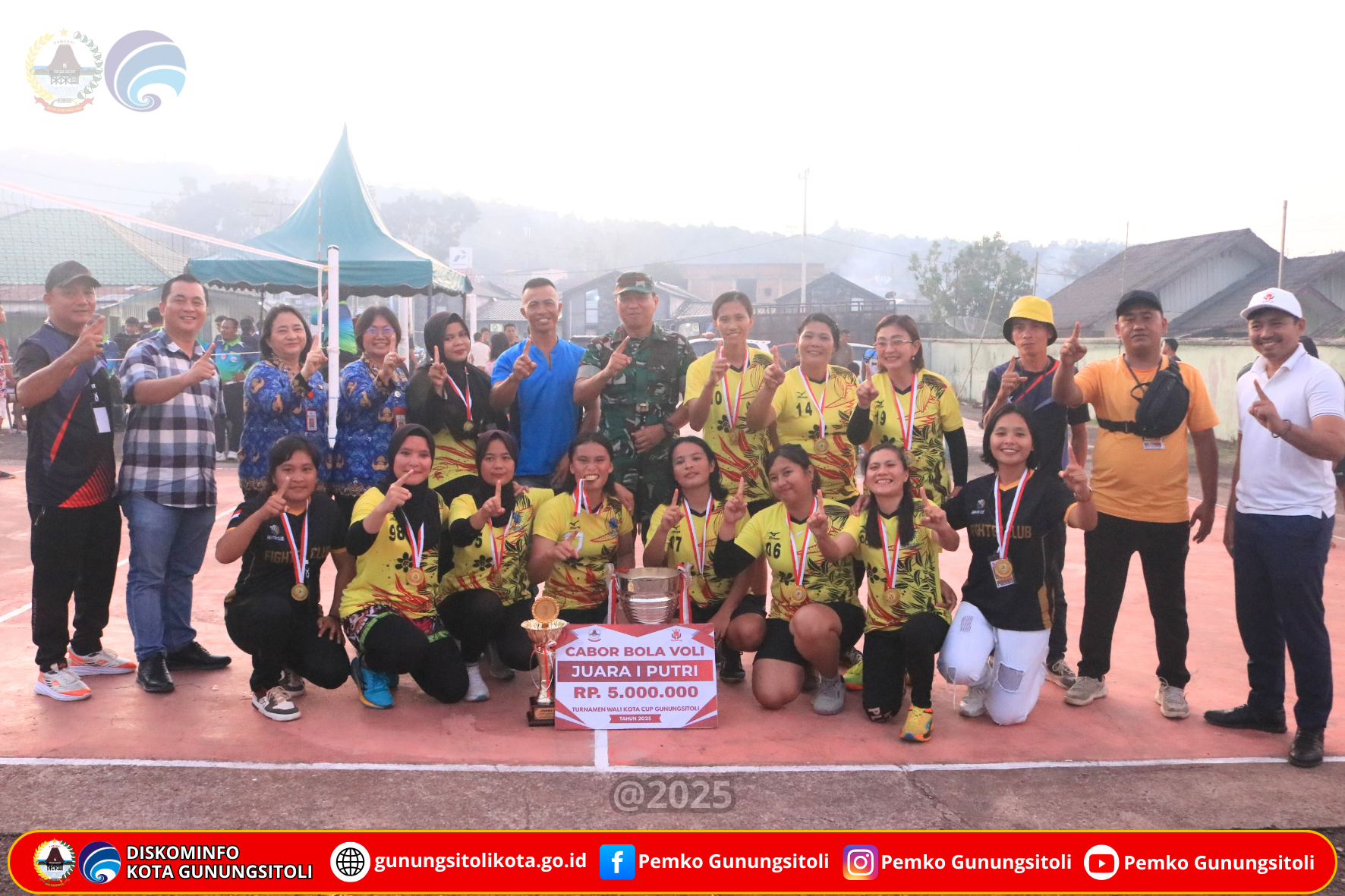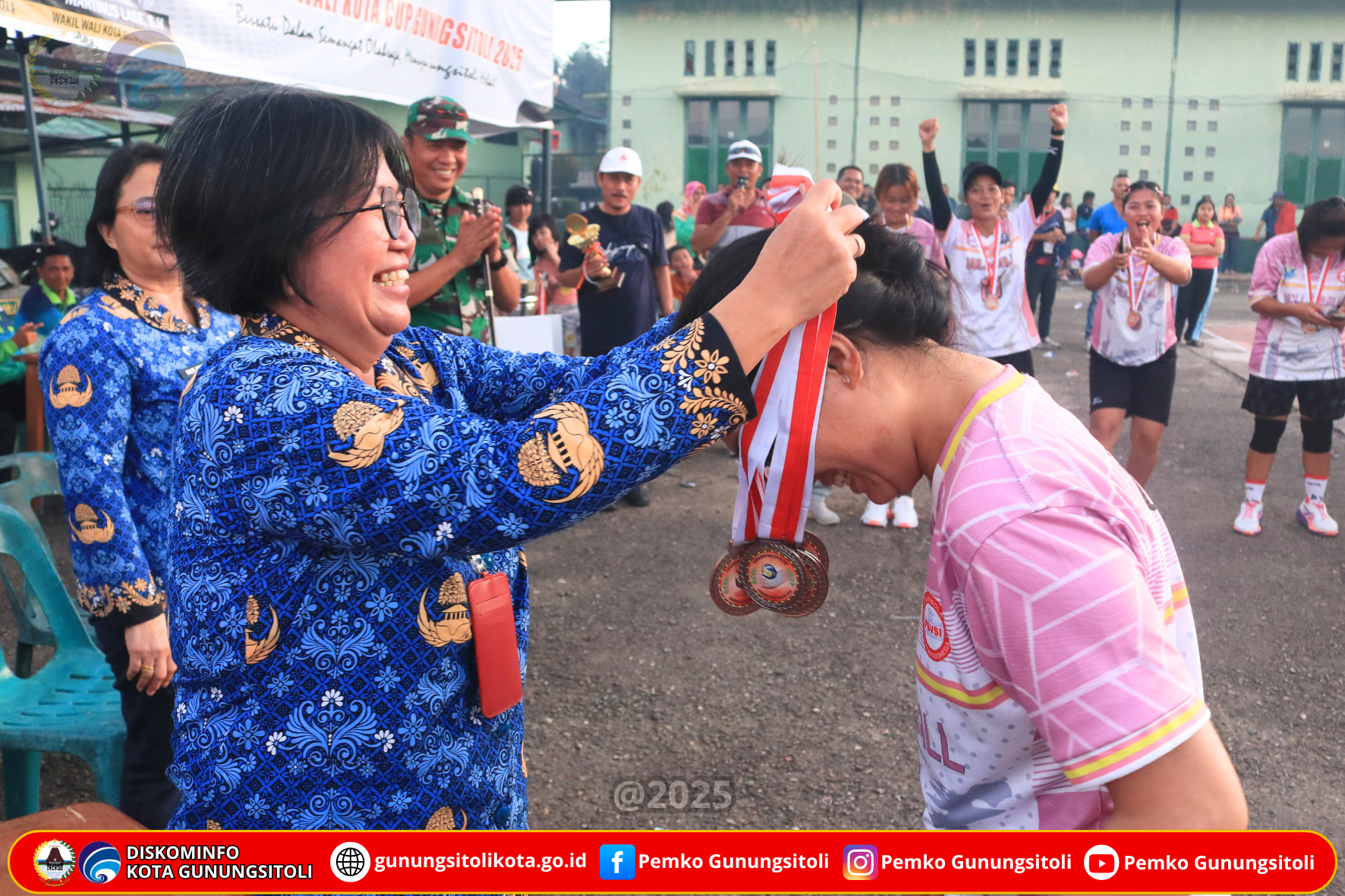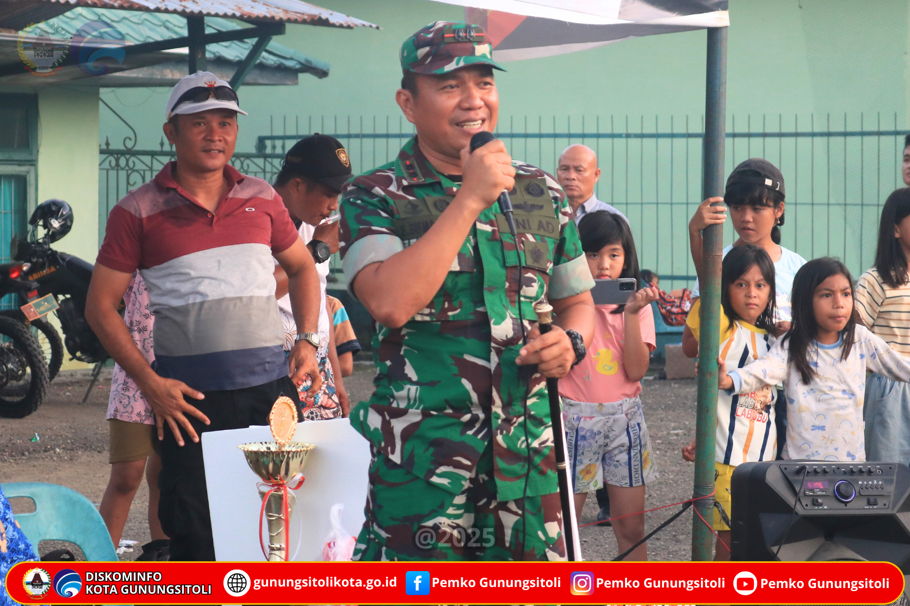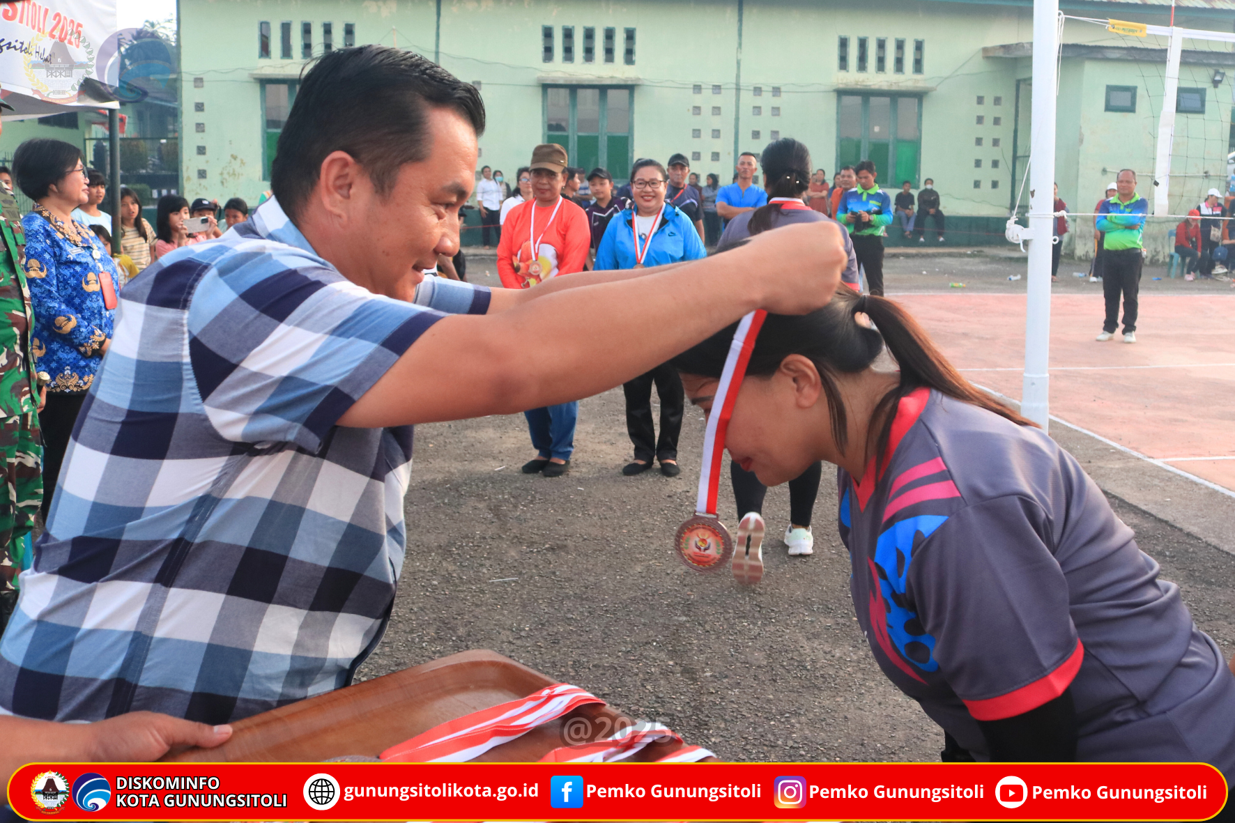 Gunungsitoli (28/10/2025) Dandim 0213/Nias Letkol Inf Sampe T. Butar Butar mewakili Wali Kota Gunungsitoli menyerahkan hadiah kepada para pemenang Turnamen Wali Kota Gunungsitoli Cup Tahun 2025 cabang olahraga bola voli putri yang berlangsung di Lapangan Makodim 0213/Nias, Senin (28/10/2025).
