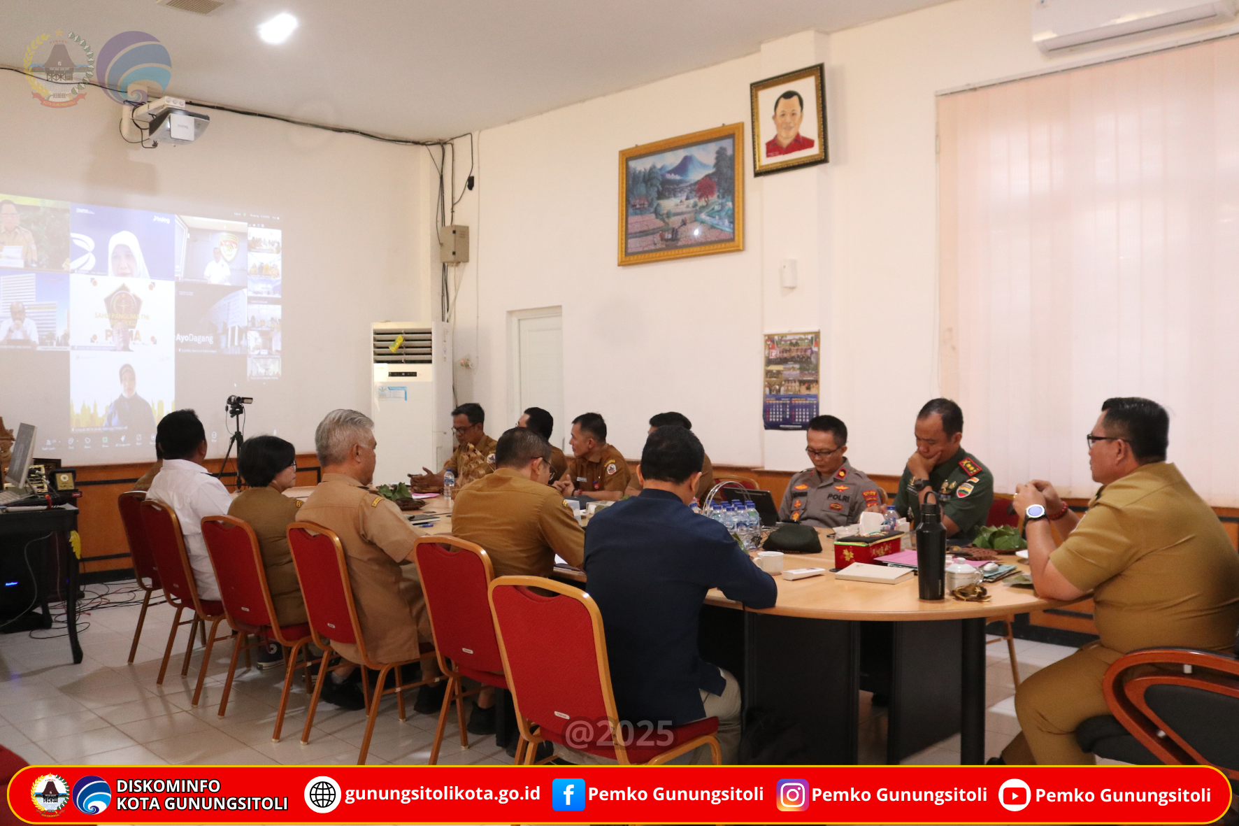 Dari ruang rapat Kantor Wali Kota Gunungsitoli, Wali Kota didampingi oleh sejumlah pejabat terkait mengikuti jalannya rapat secara daring dan mencatat berbagai arahan strategis yang akan ditindaklanjuti di tingkat daerah.