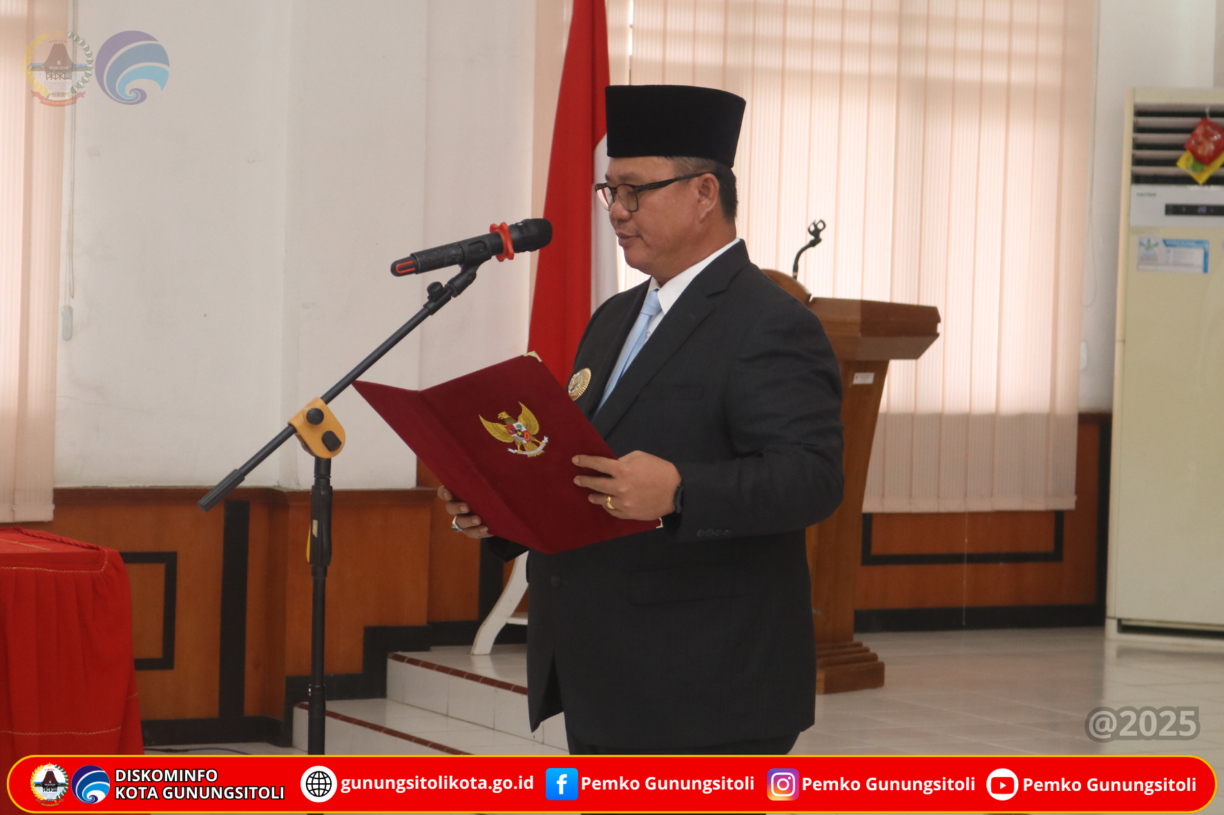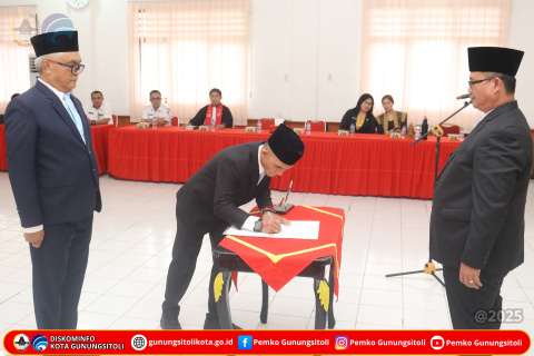 Gunungsitoli (22/10/2025) Wali Kota Gunungsitoli, Sowa’a Laoli, S.E., M.Si., bersama Wakil Wali Kota, Martinus Lase, S.H., melantik dan mengambil sumpah/janji empat Pejabat Pimpinan Tinggi Pratama di lingkungan Pemerintah Kota Gunungsitoli.Pelantikan berlangsung di Ruang Rapat II Kantor Wali Kota Gunungsitoli, Rabu (22/10/25).
