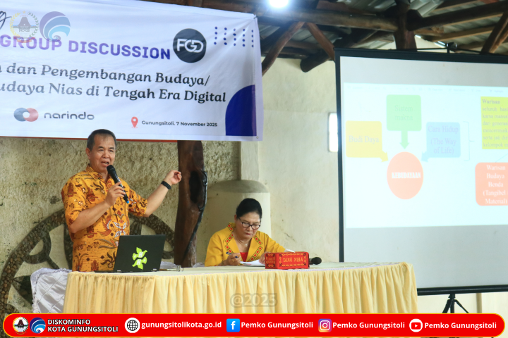 Kegiatan FGD menghadirkan sejumlah narasumber, yaitu Pdt. Dr. Tuhoni Telaumbanua, M.Si., Delipiter Lase, S.E., M.Pd., Pdt. Dr. Oinike Natalia Harefa, serta Direktur Museum Pusaka Nias Nata’alui Duha. Diskusi dipandu oleh Ir. Nur Kemala Gulo selaku moderator.