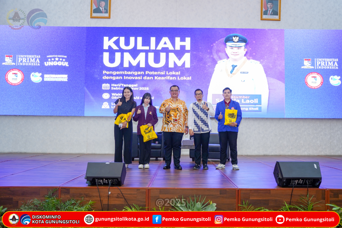 Gunungsitoli (24/11/2025) Wali Kota Gunungsitoli Sowa’a Laoli, S.E., M.Si menghadiri sekaligus menjadi narasumber pada Kuliah Umum bertema “Pengembangan Potensi Lokal dengan Inovasi dan Kearifan Lokal” yang diselenggarakan oleh Universitas Prima Indonesia (UNPRI) di Hall Utama lt. 10 Gedung Kampus Utama UNPRI, Jalan Sampul No. 3, Medan, Sabtu (22/11/25).