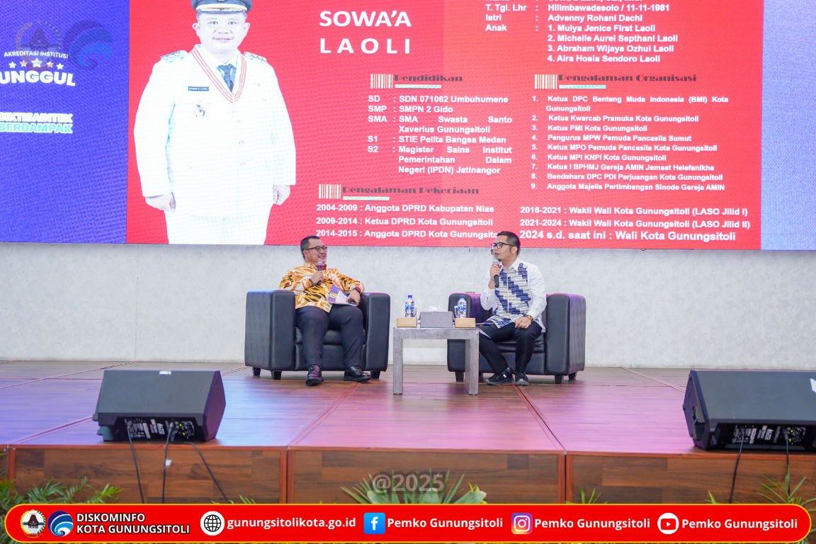 Pada kesempatan tersebut, Wali Kota Gunungsitoli memaparkan berbagai langkah strategis Pemerintah Kota dalam mendorong inovasi daerah, penguatan ekonomi berbasis potensi lokal, serta upaya mempertahankan kearifan lokal sebagai fondasi pembangunan berkelanjutan. Beliau juga menyampaikan bahwa kolaborasi antara pemerintah daerah dan perguruan tinggi merupakan kunci dalam menghasilkan sumber daya manusia yang kreatif, inovatif, dan memiliki kepedulian terhadap pembangunan daerah.