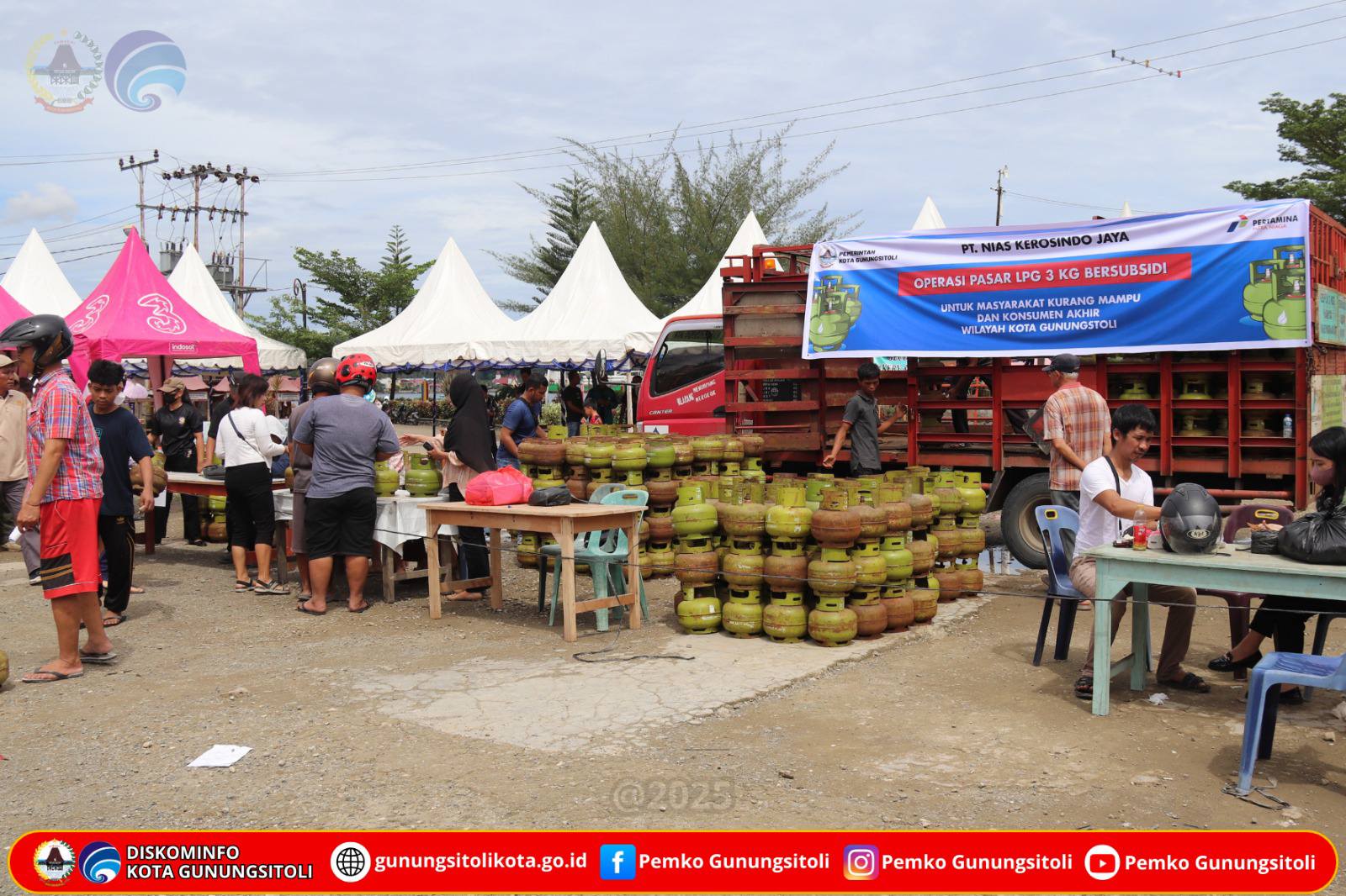 Gunungsitoli (13/12/2025) Pemerintah Kota Gunungsitoli bersama PT PERTAMINA melaksanakan Operasi Pasar LPG Tabung 3 Kg Bersubsidi yang bertempat di Pelataran Parkir Ex Pelindo Kota Gunungsitoli. Kegiatan ini dilaksanakan sebagai upaya menjaga ketersediaan serta stabilitas harga LPG bersubsidi bagi masyarakat, sekaligus dirangkaikan dengan pelaksanaan Christmas Fair untuk memastikan ketersediaan energi dan bahan pangan dengan harga terjangkau, Sabtu (13/12/25).