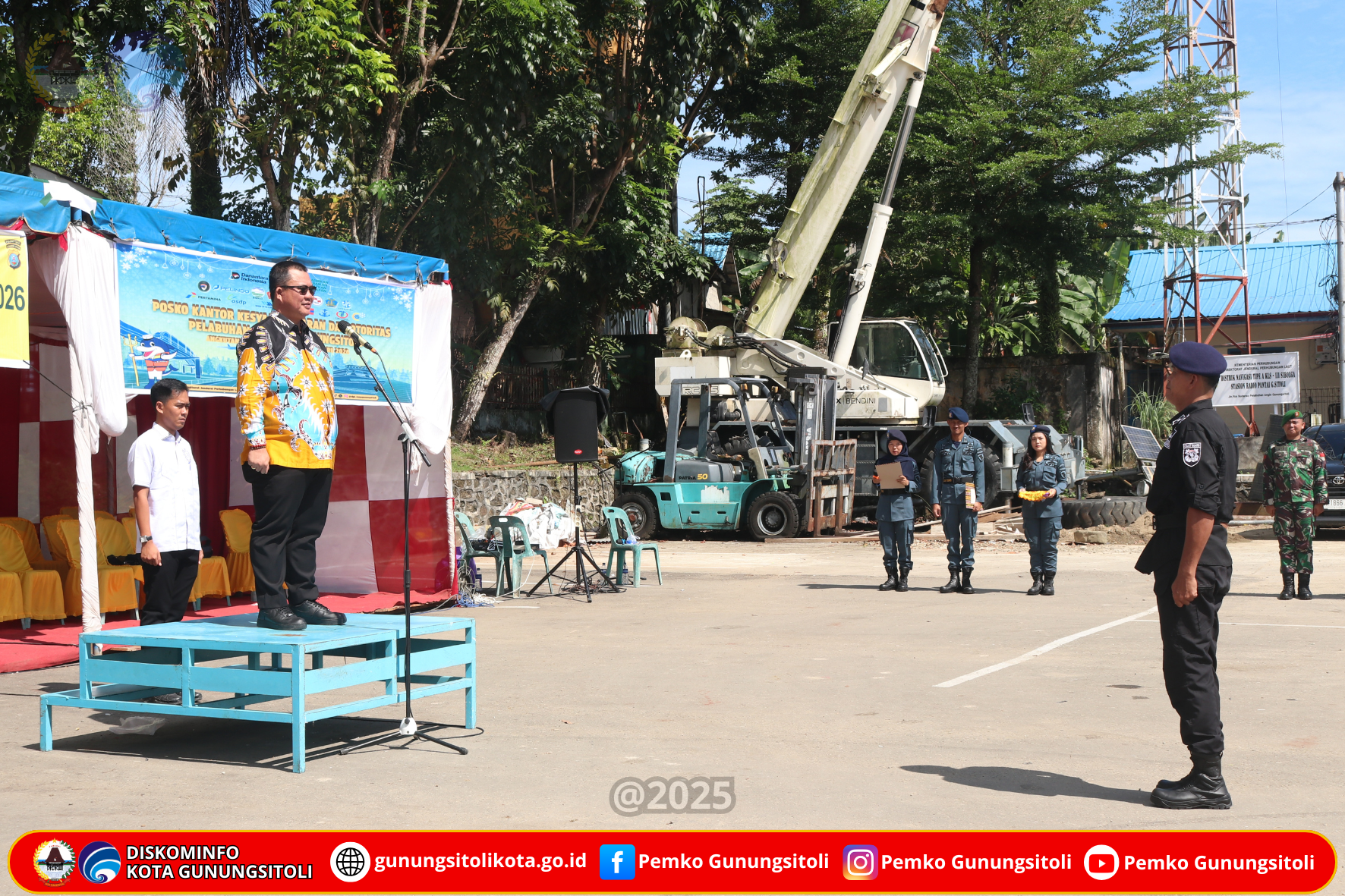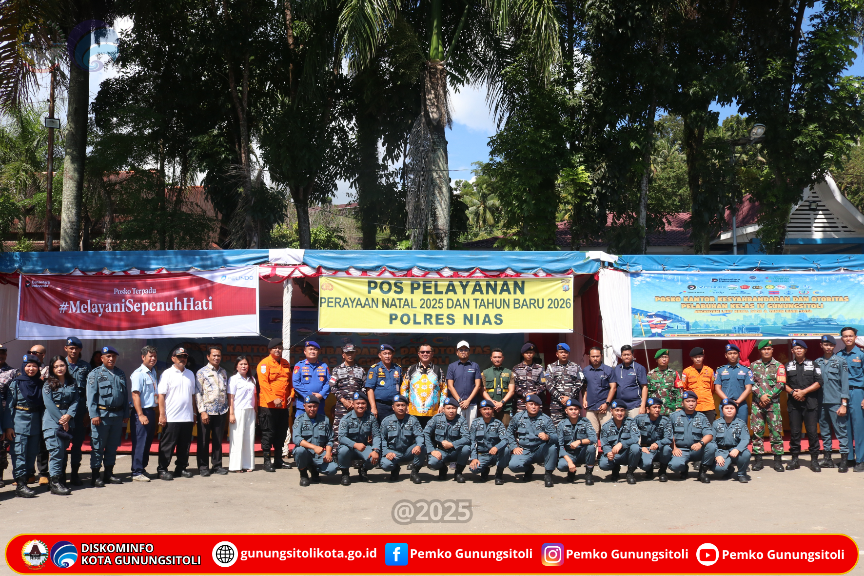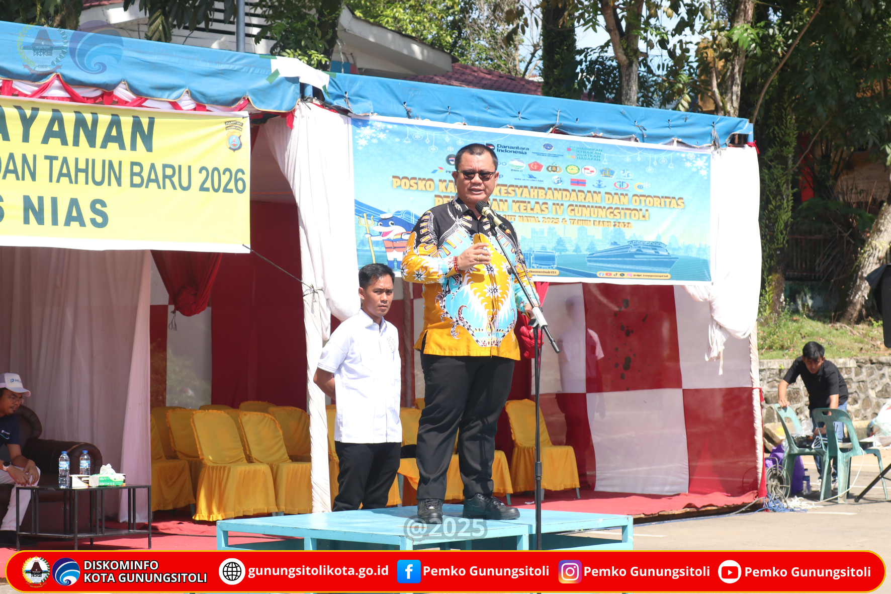 Gunungsitoli (18/12/2025) Wali Kota Gunungsitoli Sowa’a Laoli, S.E.,M.Si memimpin apel pembukaan Posko Terpadu Penyelenggaraan Angkutan Laut Natal 2025 dan Tahun Baru 2026 yang dilaksanakan di Pelabuhan Kota Gunungsitoli. Apel ini merupakan wujud kesiapsiagaan seluruh pemangku kepentingan dalam menjamin kelancaran, keselamatan, serta keamanan pelayanan angkutan laut bagi masyarakat selama masa libur Natal dan Tahun Baru, Kamis (18/12/25).