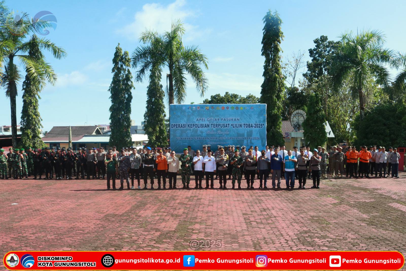 Gunungsitoli (19/12/2025) Wakil Wali Kota Gunungsitoli, Martinus Lase, S.H, menghadiri Apel Gelar Pasukan Operasi Kepolisian Terpusat Lilin Toba 2025 dalam rangka pengamanan dan pelayanan Perayaan Natal 2025 dan Tahun Baru 2026, yang dilaksanakan di Lapangan Apel Mapolres Nias, Jumat (19/12/25).