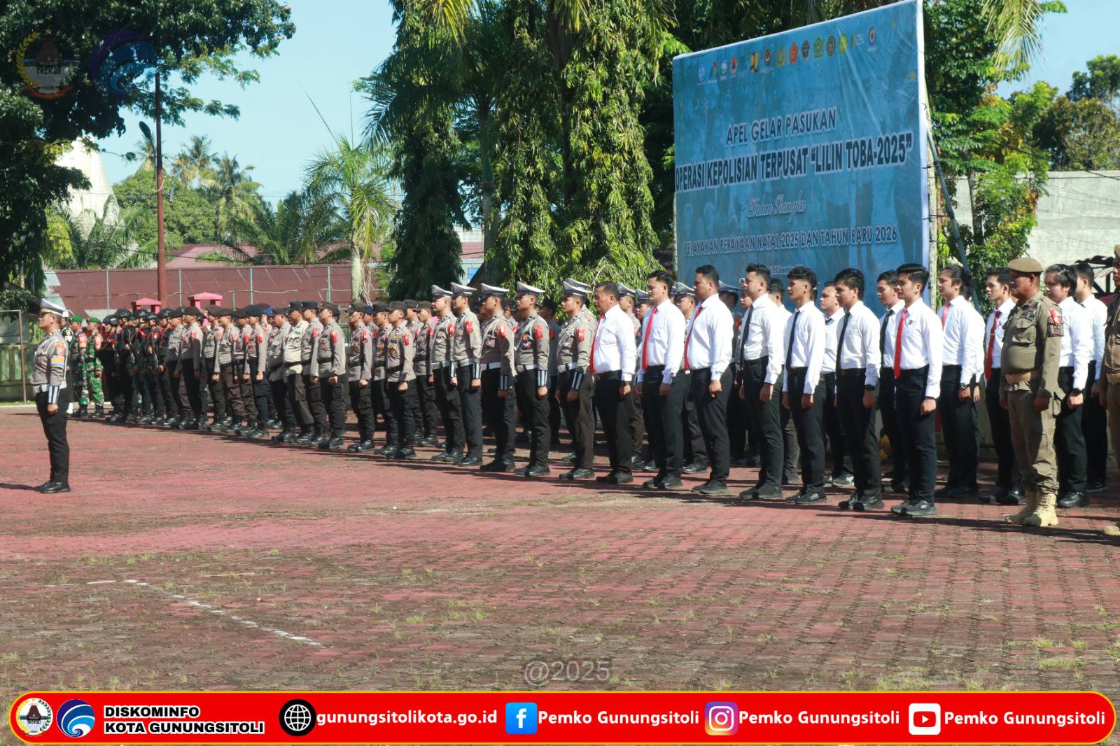 Apel gelar pasukan ini dipimpin oleh Kapolres Nias AKBP Agung S.C.D., S.Psi., M.Psi., Psi., M.K.P selaku pembina upacara, serta dihadiri Bupati Nias, Sekretaris Daerah Kabupaten Nias Utara, Wakapolres Nias, unsur Forkopimda, instansi vertikal, para Kepala OPD lingkup Pemerintah Kota Gunungsitoli dan Kabupaten, serta peserta upacara dari berbagai unsur. Kegiatan ini bertujuan untuk memastikan kesiapan personel dan sarana prasarana guna mewujudkan situasi yang aman, tertib, dan kondusif selama perayaan Natal dan Tahun Baru di wilayah Kepulauan Nias.