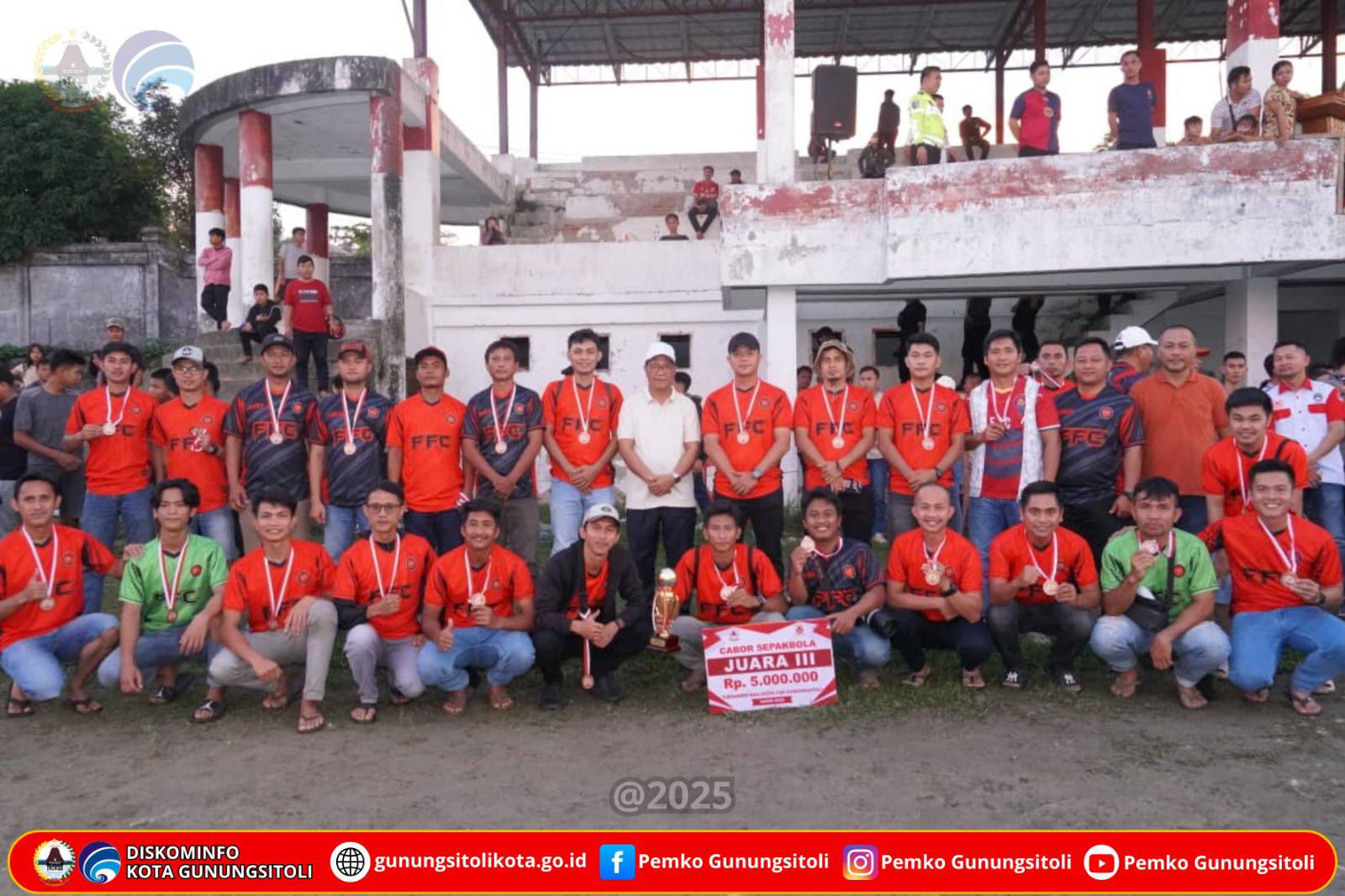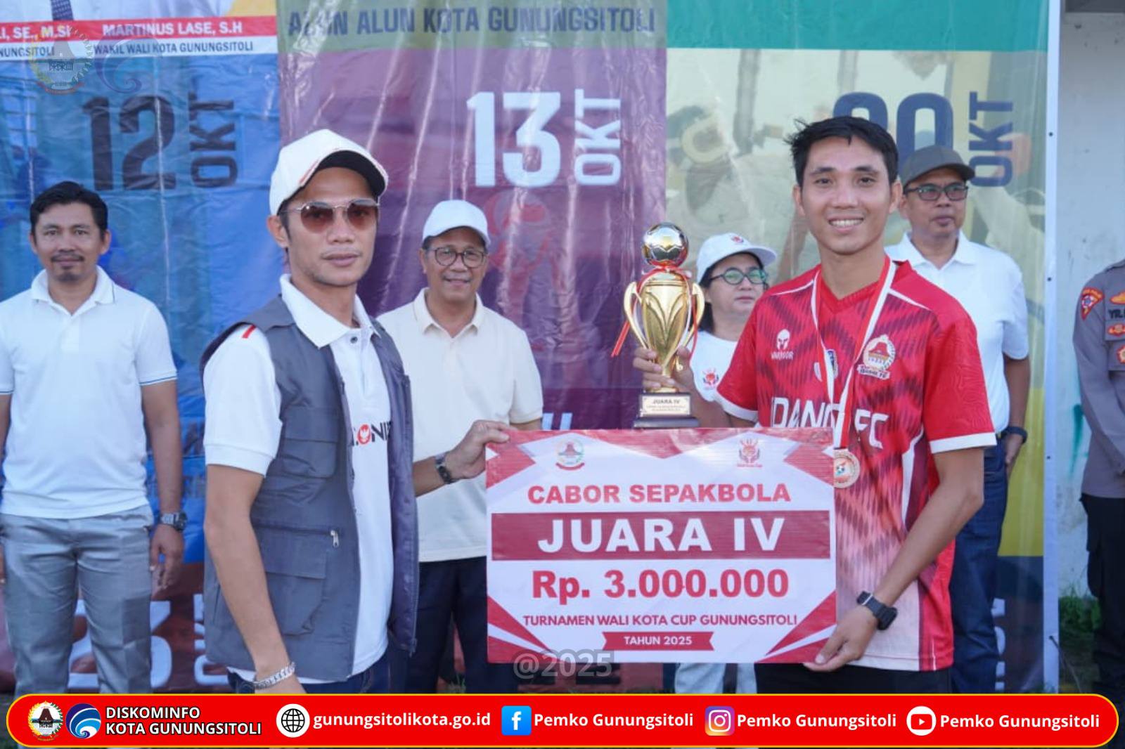 Gunungsitoli (01/12/2025) Turnamen Wali Kota Cup Gunungsitoli (TWCG) Tahun 2025 yang telah berlangsung sejak tanggal 12 Oktober 2025 resmi berakhir pada Minggu, 30 November 2025, melalui penyelenggaraan Partai Final Cabang Olahraga Sepak Bola yang berlangsung di Lapangan Sepak Bola Pelita Kota Gunungsitoli. Kegiatan penutupan secara resmi dipimpin oleh Wakil Wali Kota Gunungsitoli, Martinus Lase, S.H., Minggu (30/11/2025).