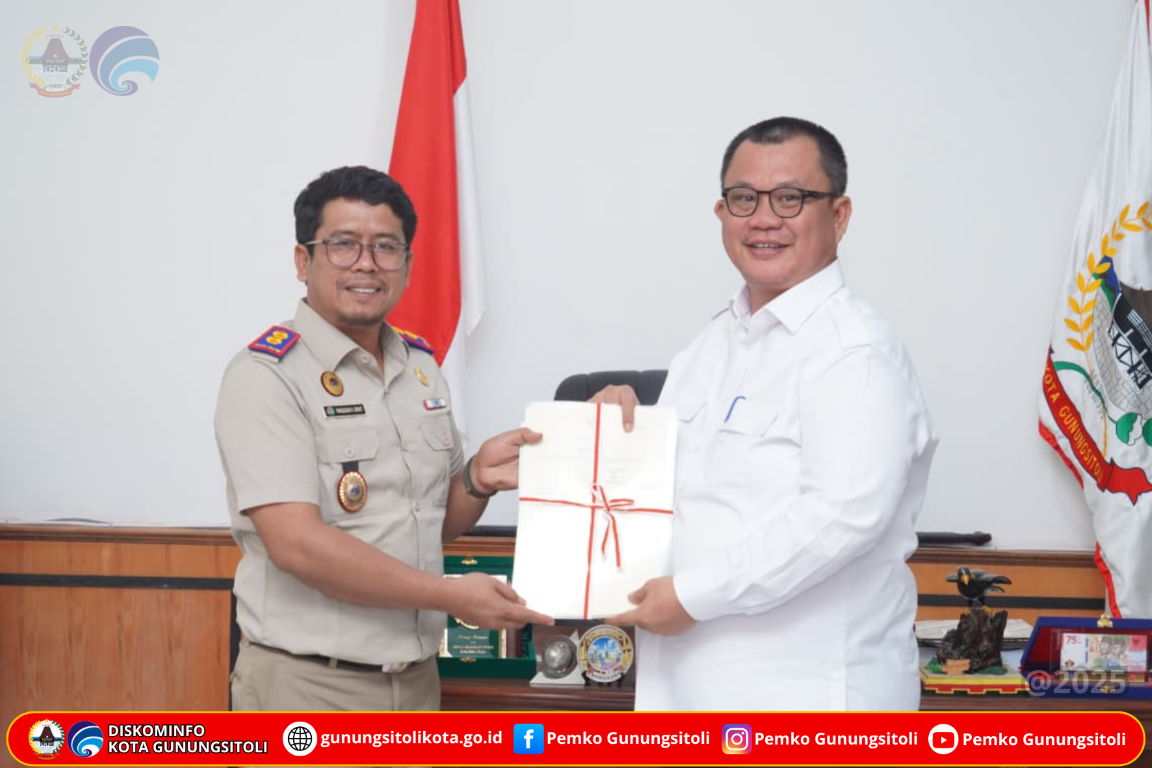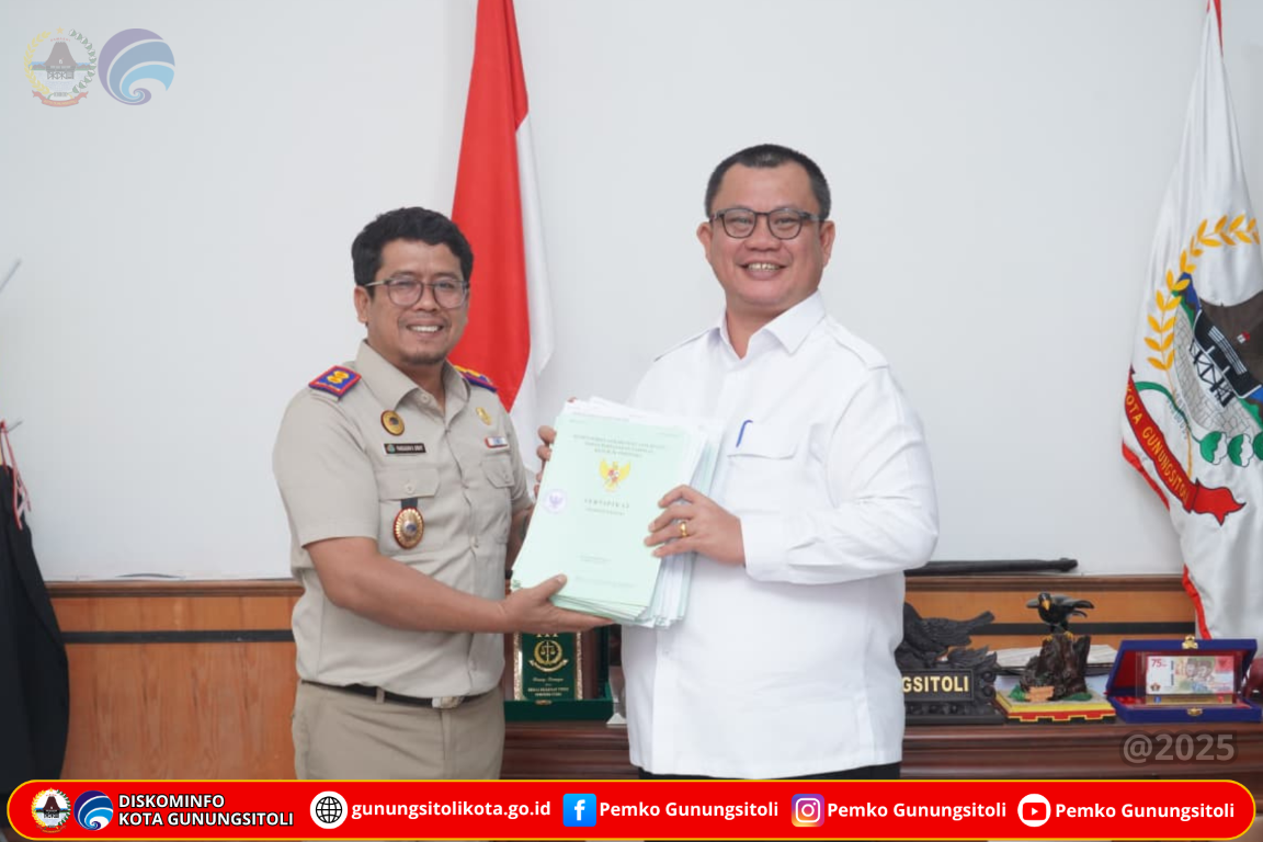 Gunungsitoli (15/12/2025) Wali Kota Gunungsitoli Sowa’a Laoli, S.E.,M.Si menerima audiensi dari Badan Pertanahan Nasional (BPN) Nias terkait penyerahan sertifikat aset milik Pemerintah Kota Gunungsitoli serta sertifikat tanah Sekolah Rakyat, bertempat di Ruang Rapat Wali Kota Gunungsitoli, Senin (15/12/25).
