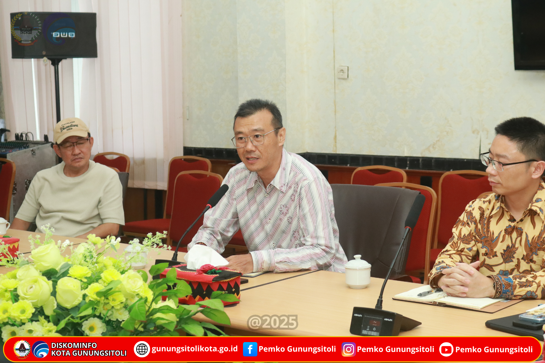 Gunungsitoli, (17/12/2025) Wali Kota Gunungsitoli, Sowa’a Laoli, S.E., M.Si., didampingi Kepala Dinas Lingkungan Hidup Kota Gunungsitoli, Ir. Ignasius Harefa, menerima audiensi dari anak perusahaan BUMN China (MCC) yang berpusat di Jakarta, PT CCEPC Environment Protection and Energy Comprehensive Utilization Indonesia, bertempat di Ruang Rapat Center Kantor Wali Kota Gunungsitoli, Rabu (17/12/2025).