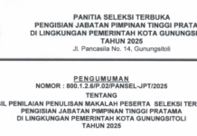 Pengumuman Hasil Penilaian Penulisan Makalah Peserta Seleksi Terbuka Pengisian JPTP Lingkup Kota Gunungsitoli Tahun...