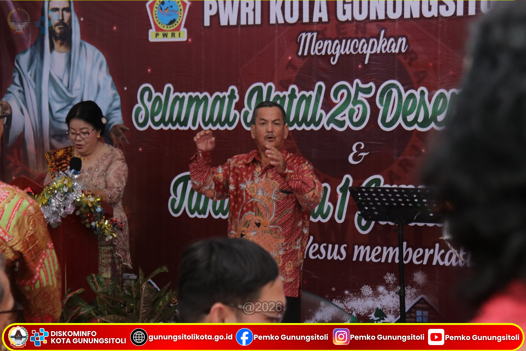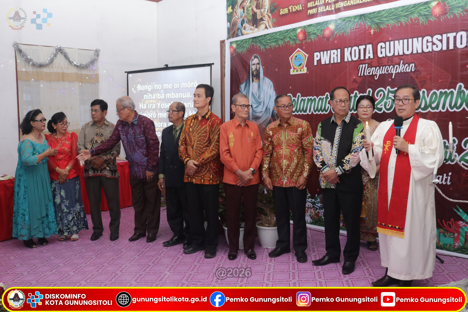 Gunungsitoli (24/01/2026) Wakil Wali Kota Gunungsitoli, Martinus Lase, S.H., menghadiri Perayaan Natal Tahun 2025 dan Syukuran Tahun Baru 2026 Persatuan Wredatama Republik Indonesia (PWRI) Kota Gunungsitoli yang dilaksanakan di Kantor PWRI Kota Gunungsitoli, Sabtu (24/01/2026).