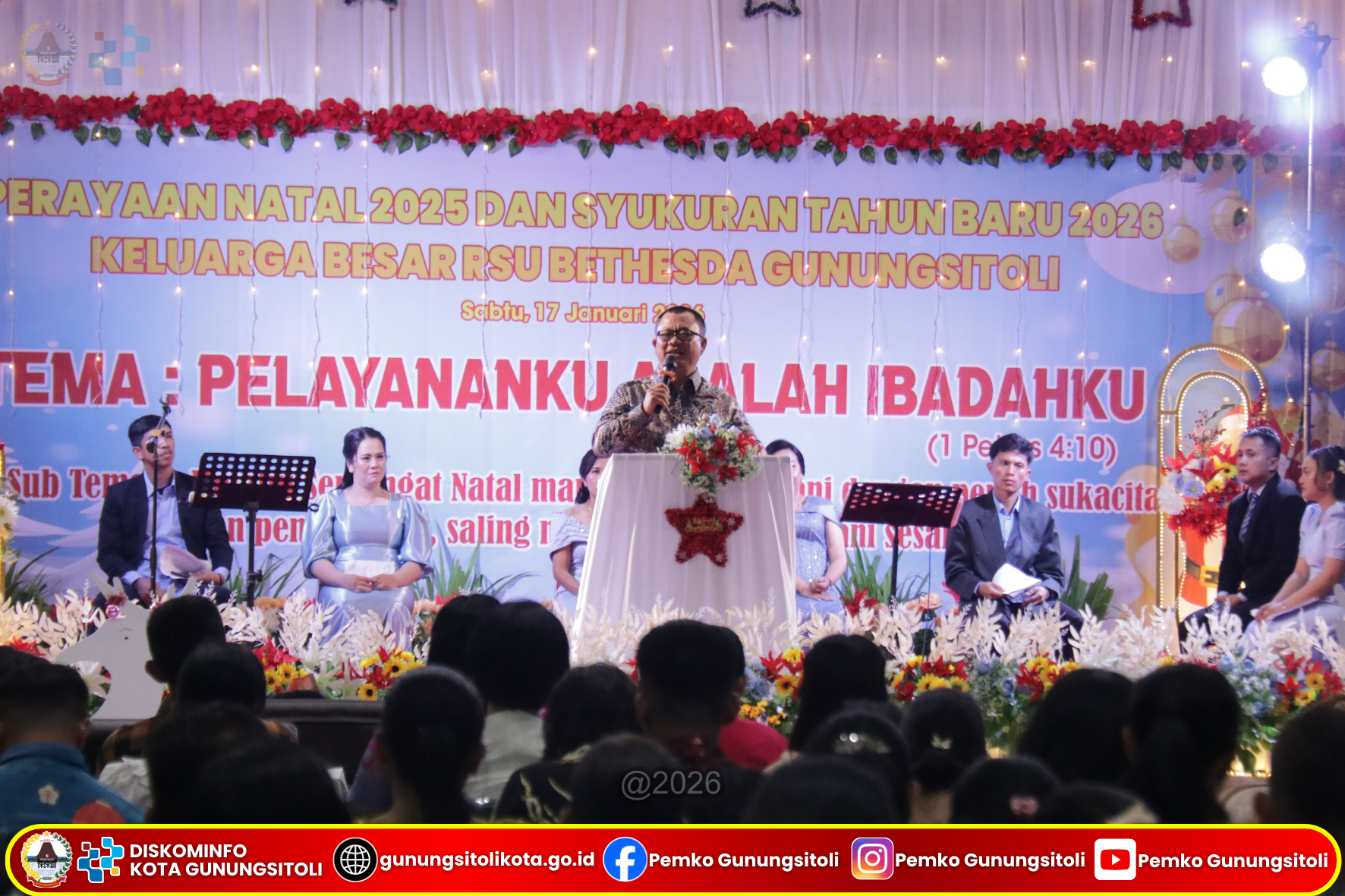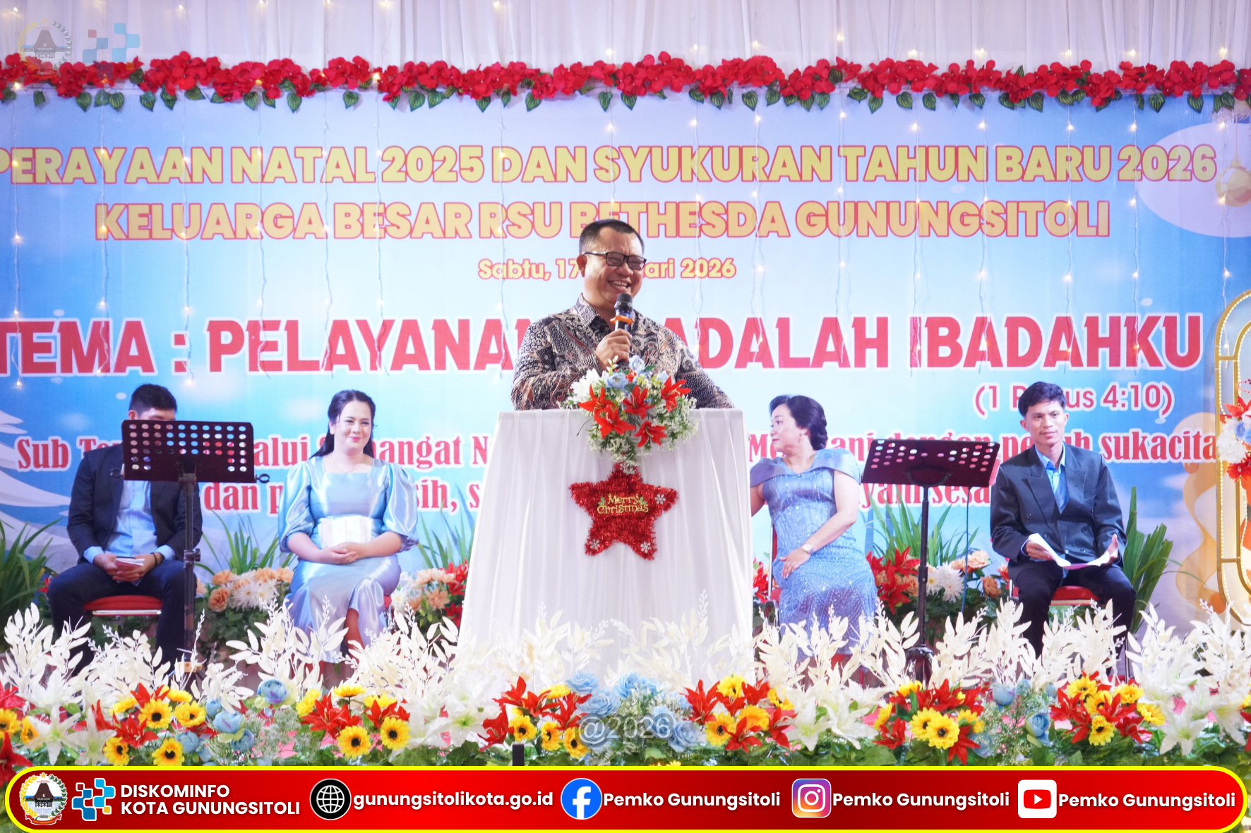 Dalam sambutannya, Wali Kota Gunungsitoli menyampaikan bahwa perayaan Natal merupakan wujud nyata kasih Allah yang mengajarkan setiap insan untuk saling mengasihi, melayani dengan tulus, dan menghadirkan damai sejahtera bagi sesama. Ia mengapresiasi keluarga besar RSU Bethesda yang terus menghidupi semangat kasih Natal melalui pelayanan kesehatan yang humanis, penuh empati, dan berorientasi pada keselamatan serta kesejahteraan masyarakat, seraya berharap nilai-nilai tersebut senantiasa menjadi landasan dalam menjalani tugas dan pengabdian di tahun yang baru.