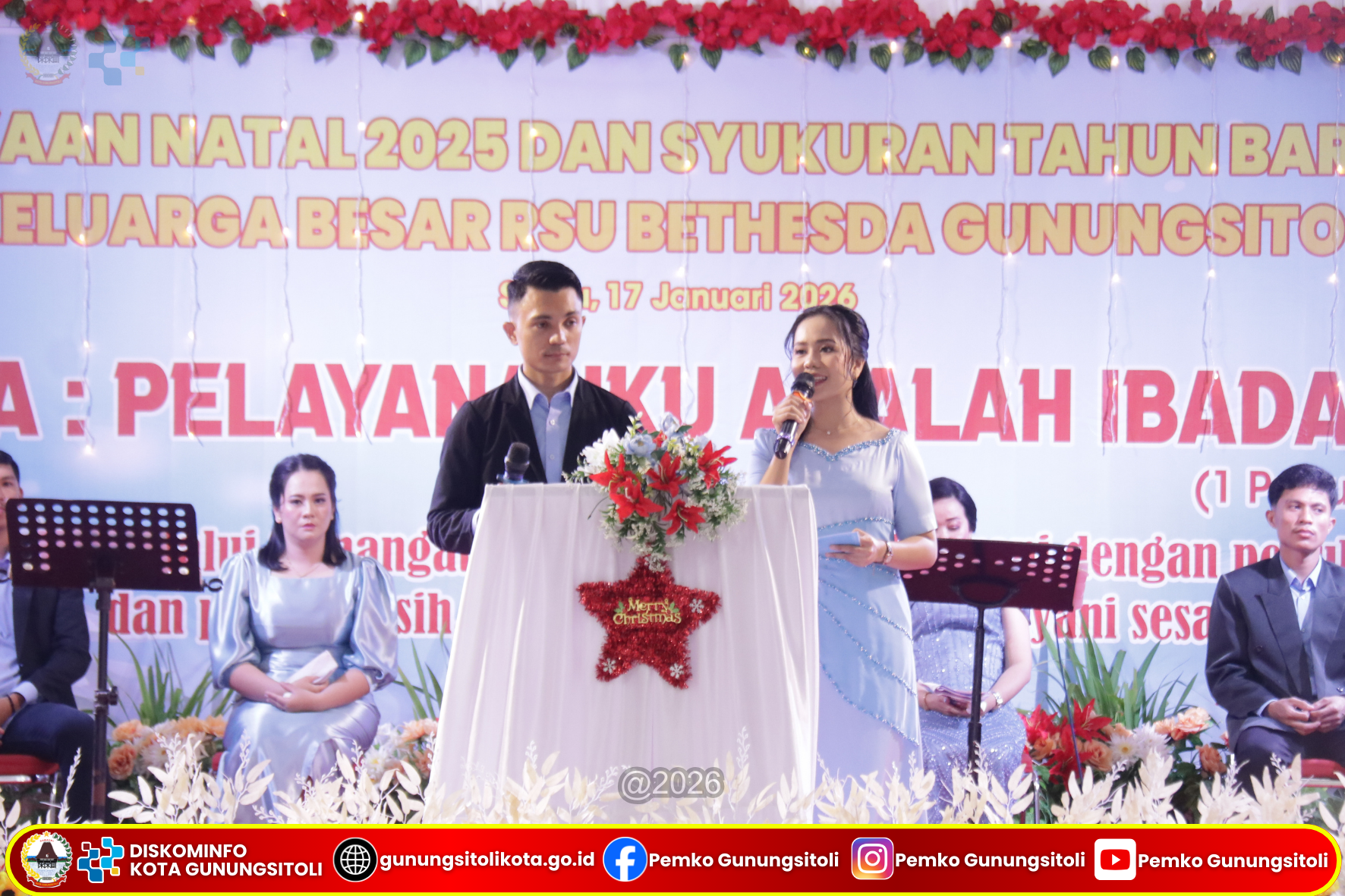 Sementara itu, Wakil Wali Kota Gunungsitoli menyampaikan bahwa Natal dan Syukuran Tahun Baru menjadi panggilan untuk memperbarui komitmen pelayanan yang dilandasi kasih, pengorbanan, dan keikhlasan. Ia mengajak seluruh keluarga besar RSU Bethesda untuk terus memperkuat kebersamaan, meningkatkan kualitas pelayanan, serta menjadikan rumah sakit sebagai ruang penyembuhan yang tidak hanya menyentuh aspek fisik, tetapi juga menghadirkan pengharapan, penguatan iman, dan kasih bagi setiap pasien dan keluarga yang dilayani.