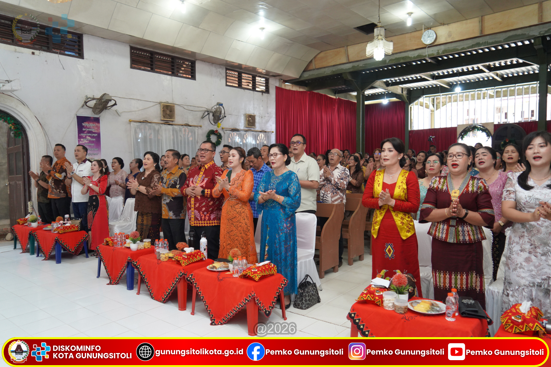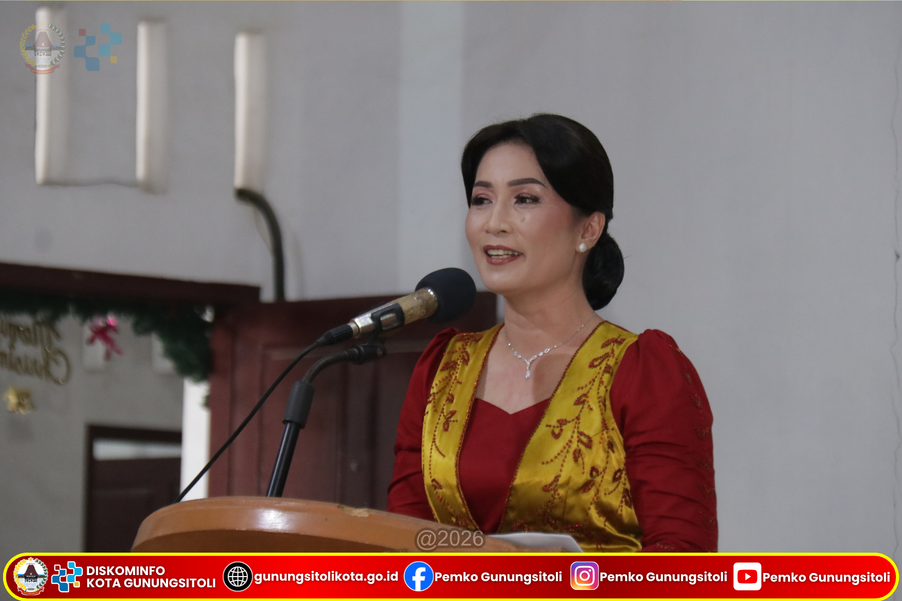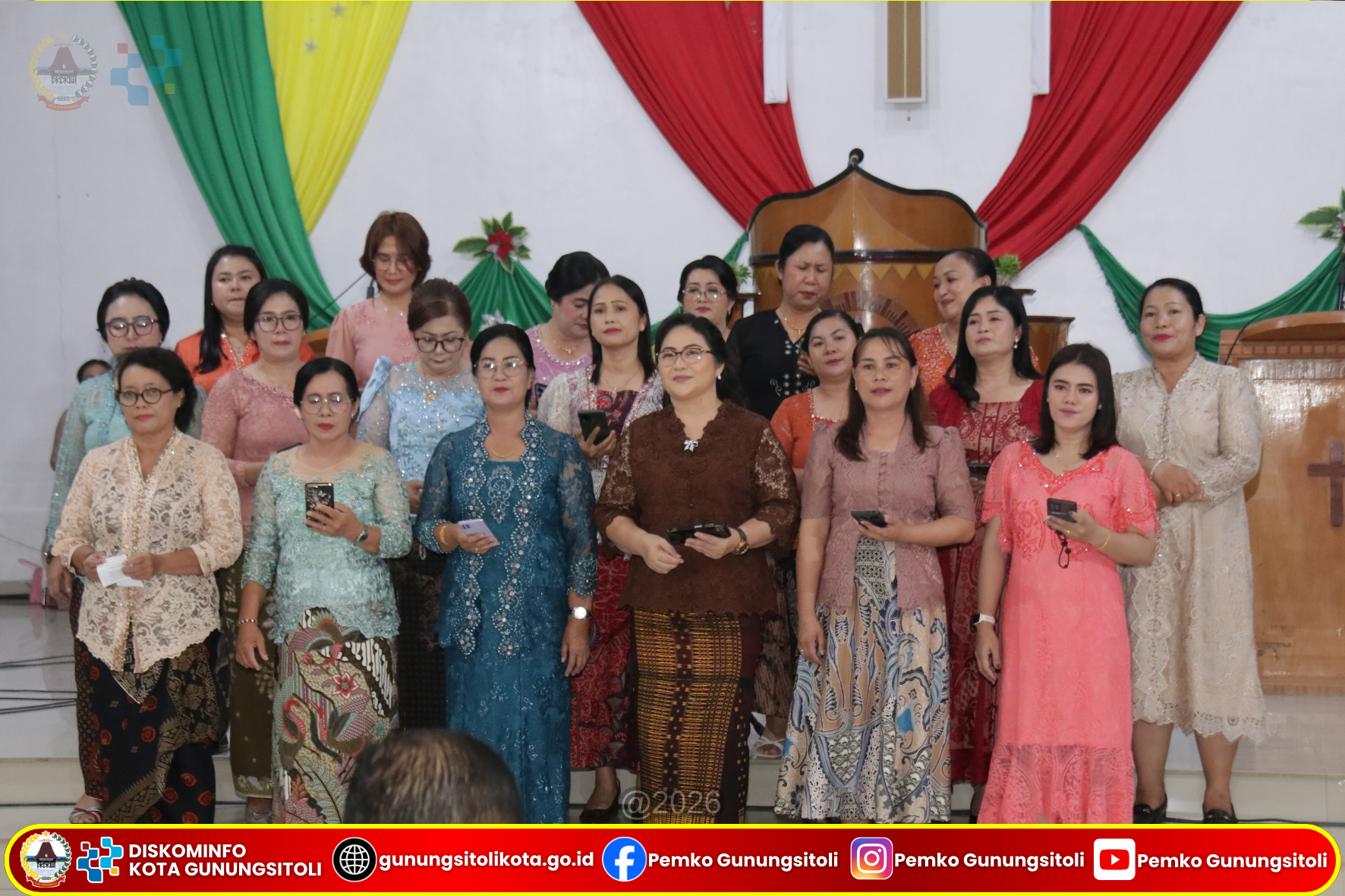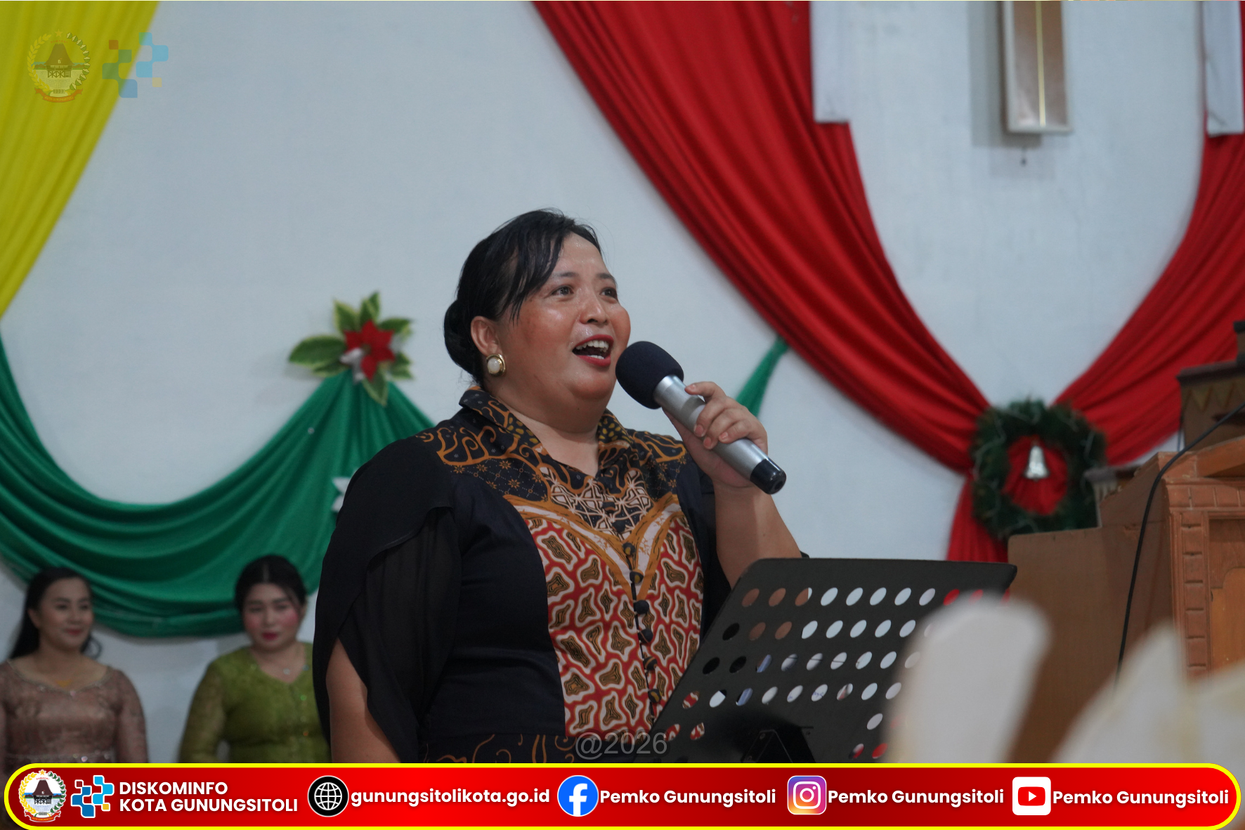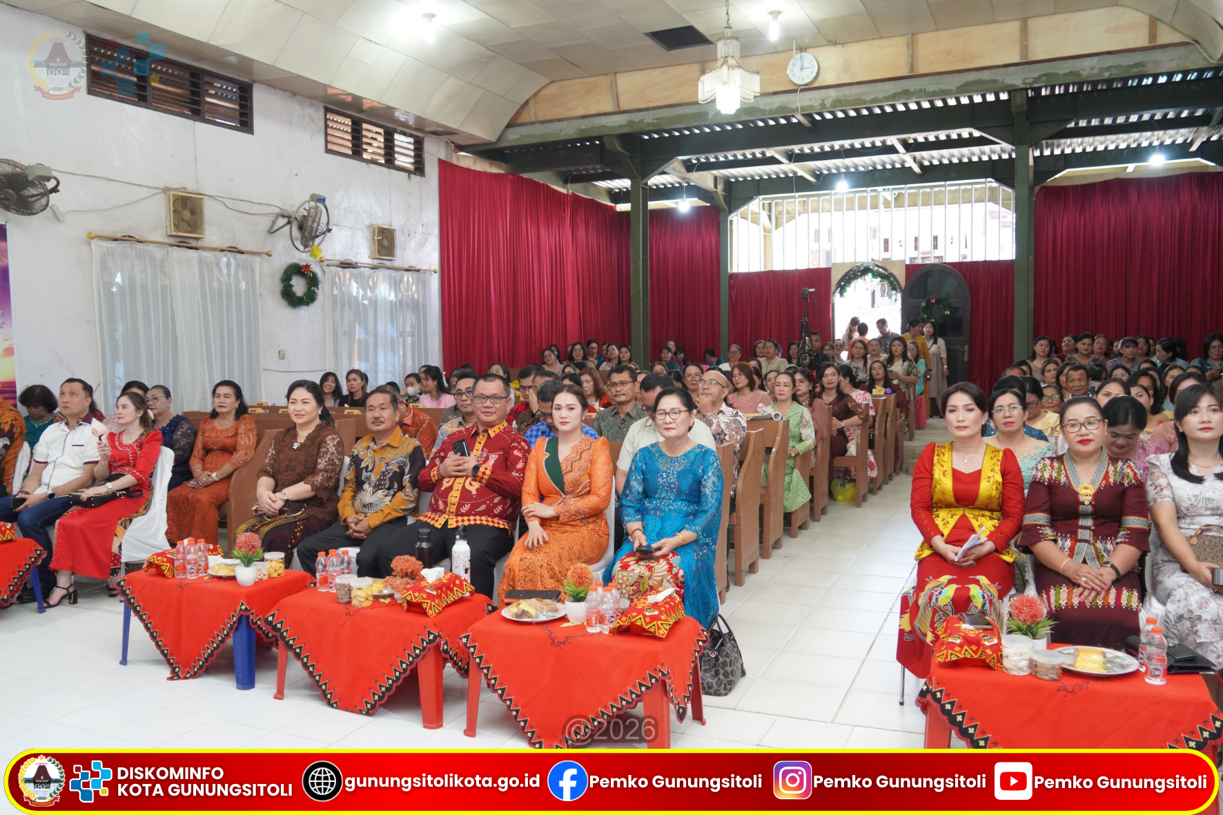 Gunungsitoli, (15/1/2026) Wali Kota Gunungsitoli, Sowa’a Laoli, S.E., M.Si., didampingi Pj. Sekretaris Daerah Kota Gunungsitoli, Meiman Kristian Harefa, S.Sos., M.S.P., serta Ketua TP. PKK Kota Gunungsitoli, Ny. Veny Sowa’a Laoli, didampingi Ketua DWP Kota Gunungsitoli, Ny. Dita Meiman Harefa, menghadiri Ibadah Natal dan Syukuran Tahun Baru TP. PKK dan Dharma Wanita Persatuan (DWP) Kota Gunungsitoli yang dilaksanakan di Gereja ONKP Kota Gunungsitoli, Kamis (15/1/2026).