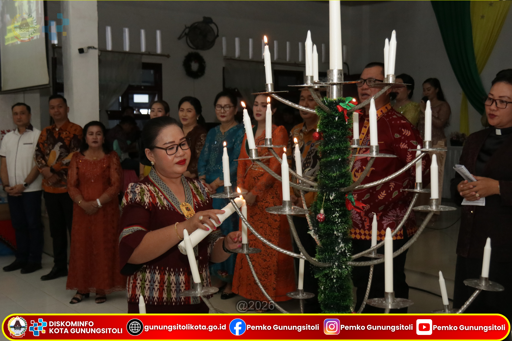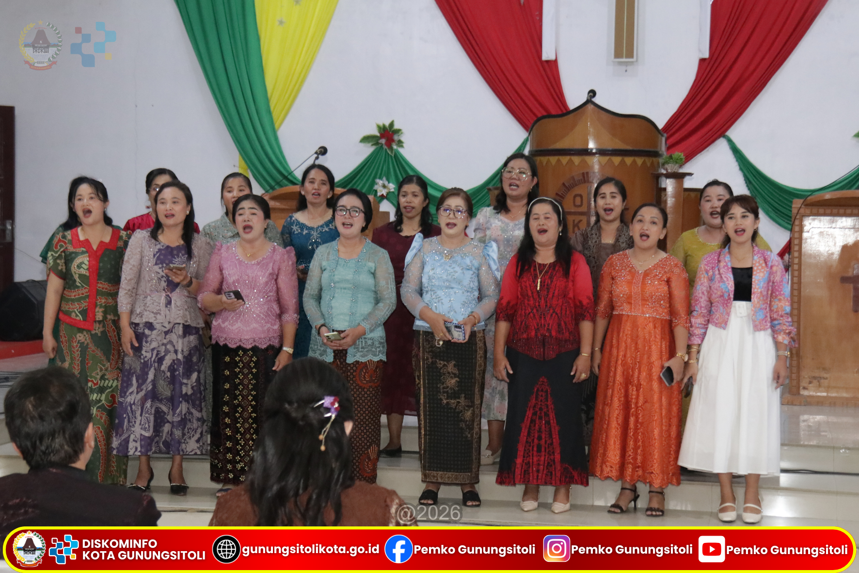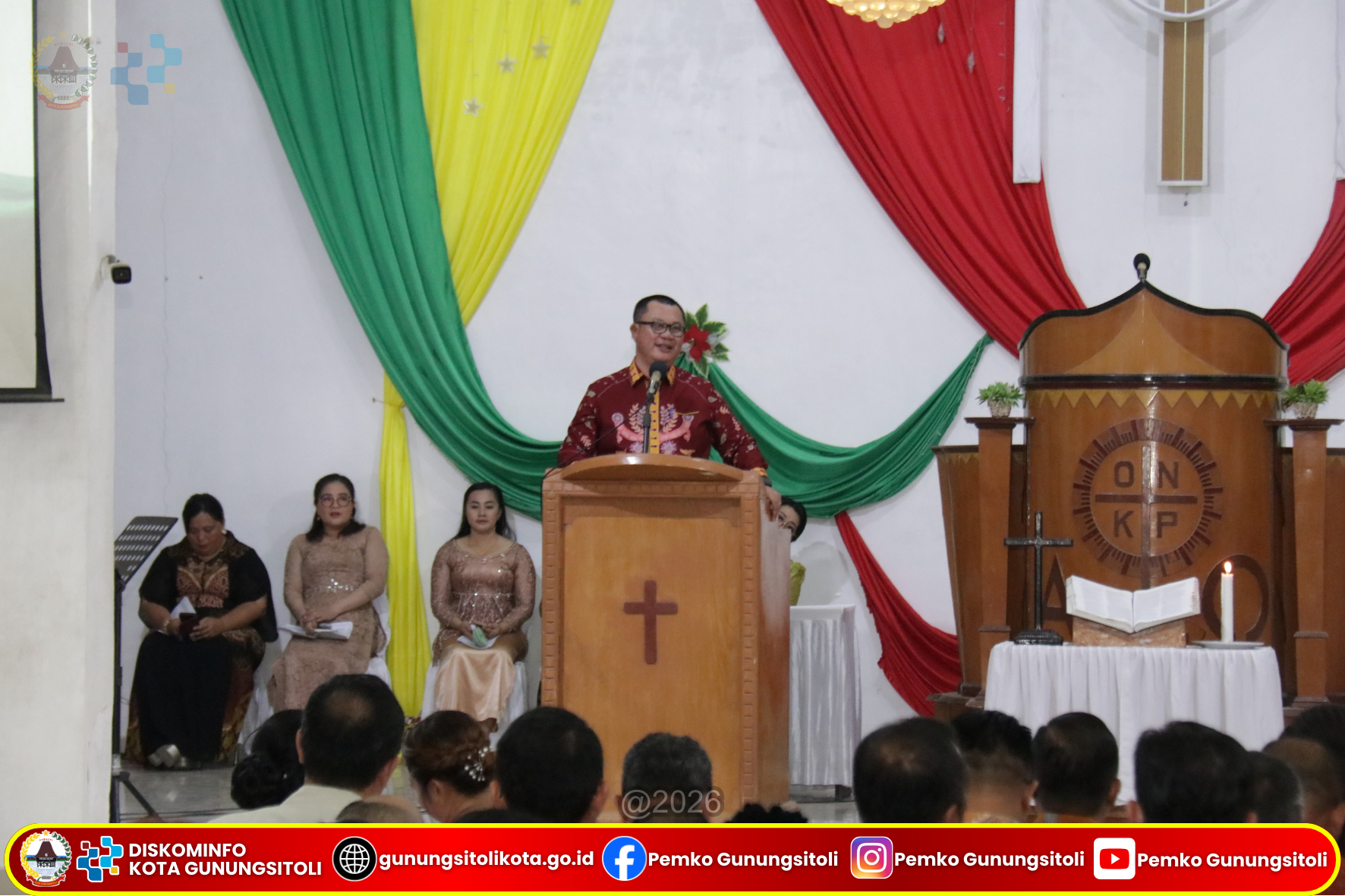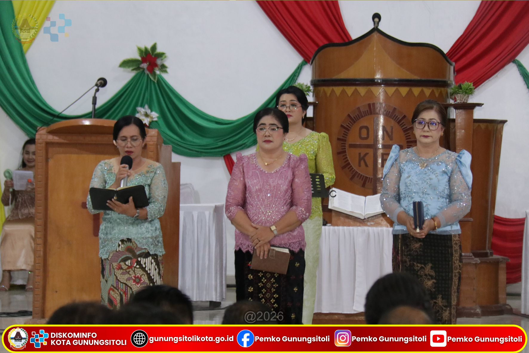 Gunungsitoli, (15/1/2026) Wali Kota Gunungsitoli, Sowa’a Laoli, S.E., M.Si., didampingi Pj. Sekretaris Daerah Kota Gunungsitoli, Meiman Kristian Harefa, S.Sos., M.S.P., serta Ketua TP. PKK Kota Gunungsitoli, Ny. Veny Sowa’a Laoli, didampingi Ketua DWP Kota Gunungsitoli, Ny. Dita Meiman Harefa, menghadiri Ibadah Natal dan Syukuran Tahun Baru TP. PKK dan Dharma Wanita Persatuan (DWP) Kota Gunungsitoli yang dilaksanakan di Gereja ONKP Kota Gunungsitoli, Kamis (15/1/2026).