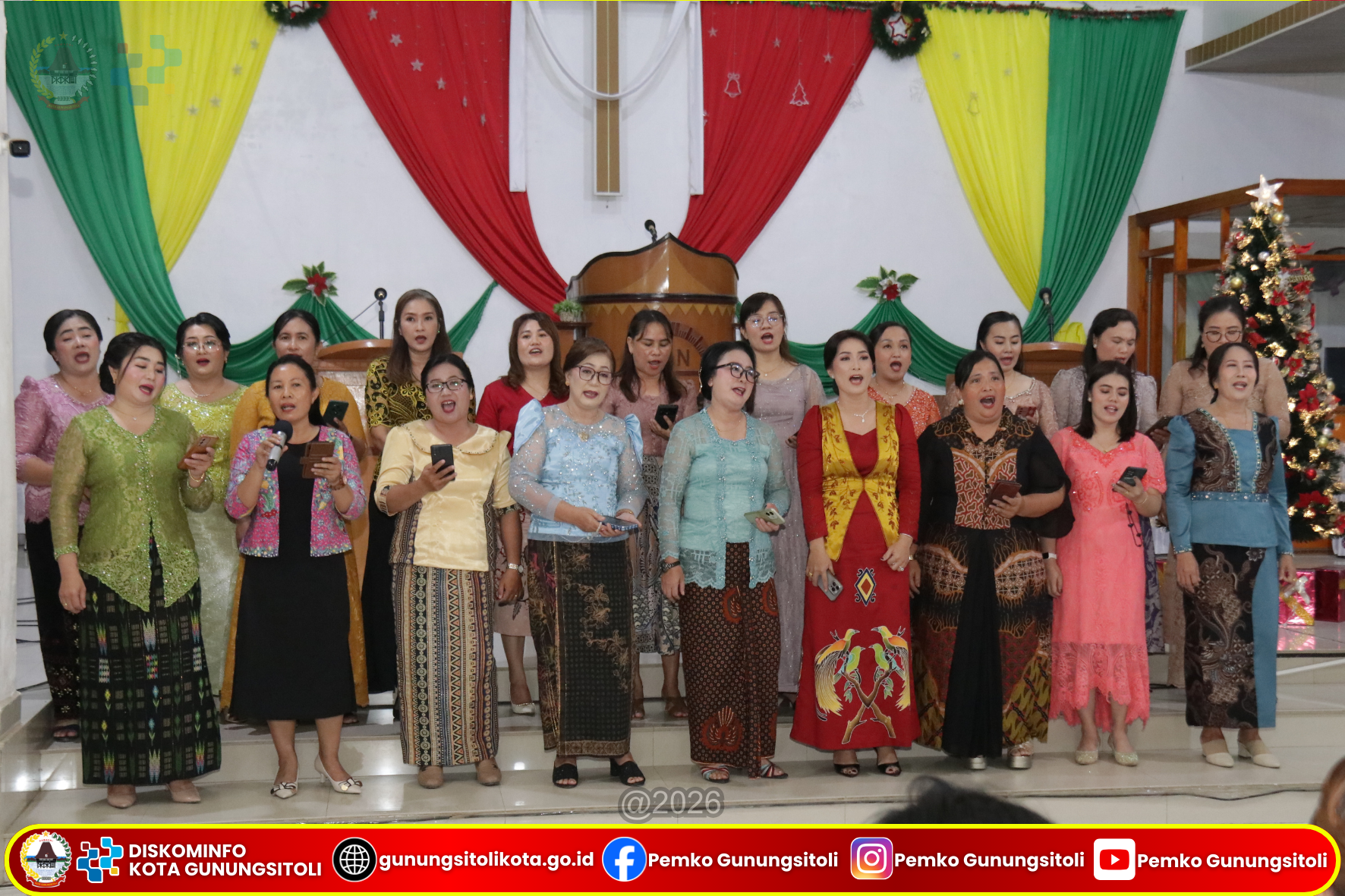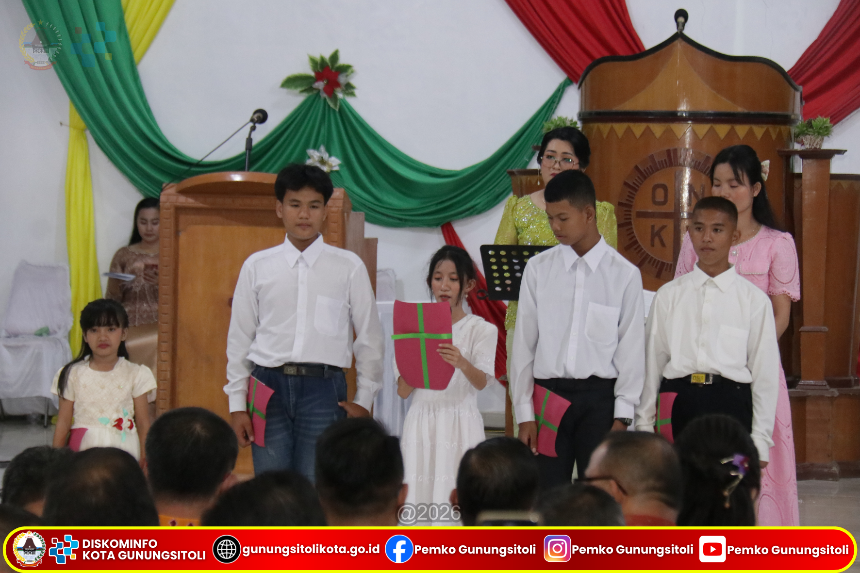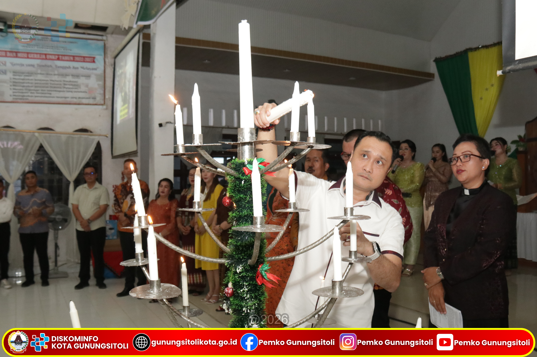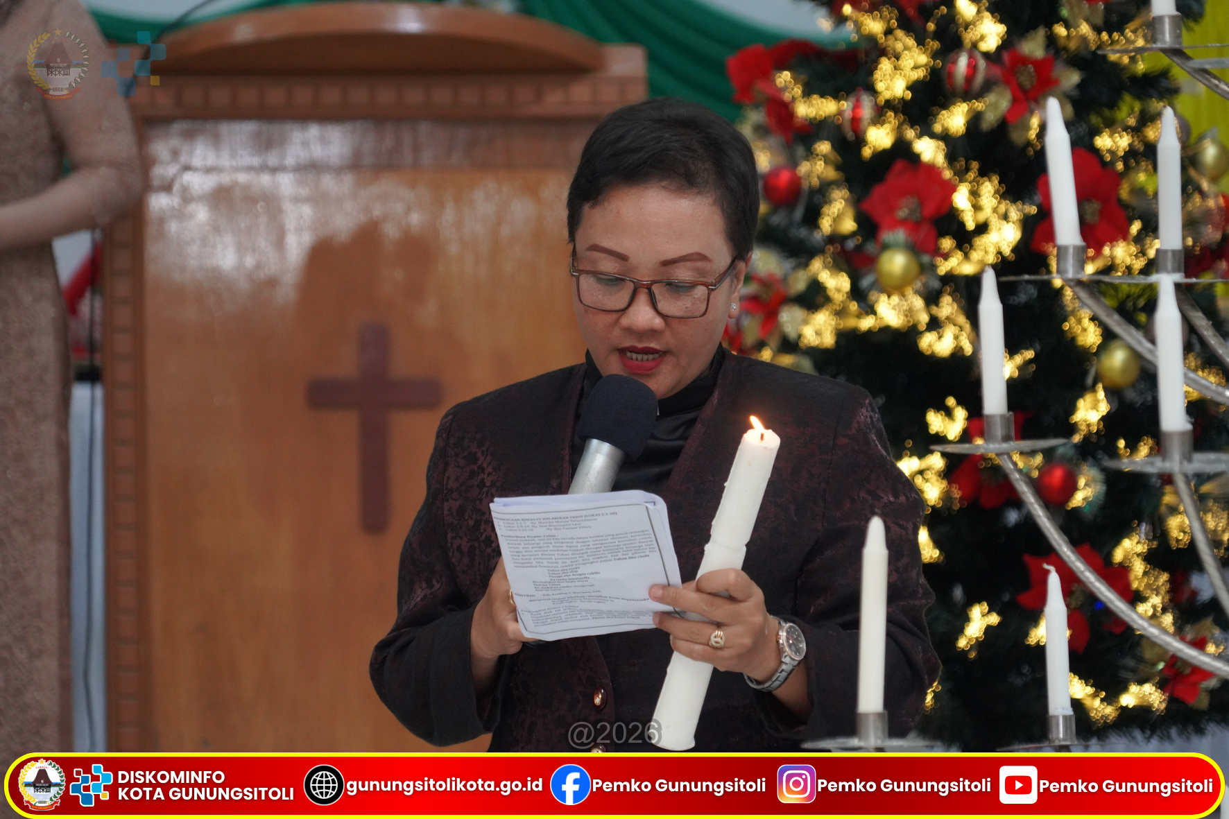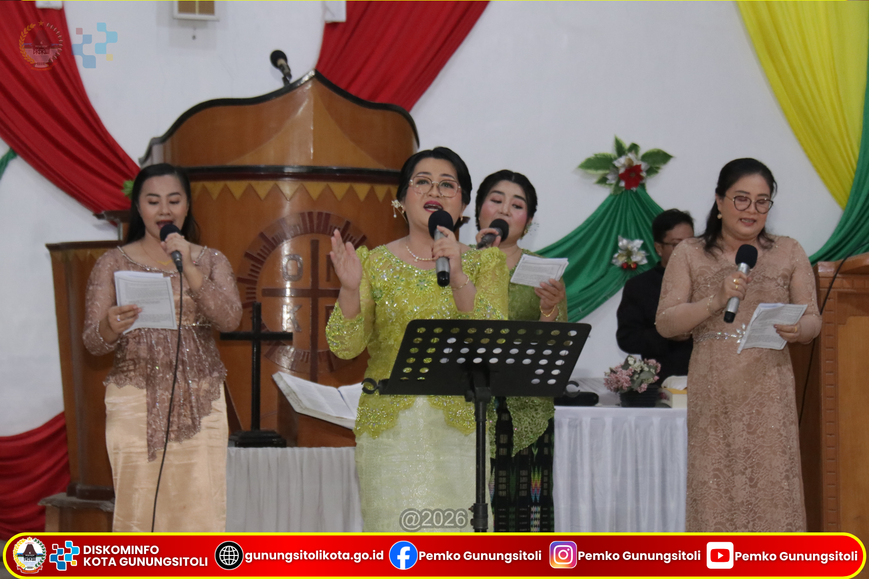 Gunungsitoli, (15/1/2026) Wali Kota Gunungsitoli, Sowa’a Laoli, S.E., M.Si., didampingi Pj. Sekretaris Daerah Kota Gunungsitoli, Meiman Kristian Harefa, S.Sos., M.S.P., serta Ketua TP. PKK Kota Gunungsitoli, Ny. Veny Sowa’a Laoli, didampingi Ketua DWP Kota Gunungsitoli, Ny. Dita Meiman Harefa, menghadiri Ibadah Natal dan Syukuran Tahun Baru TP. PKK dan Dharma Wanita Persatuan (DWP) Kota Gunungsitoli yang dilaksanakan di Gereja ONKP Kota Gunungsitoli, Kamis (15/1/2026).