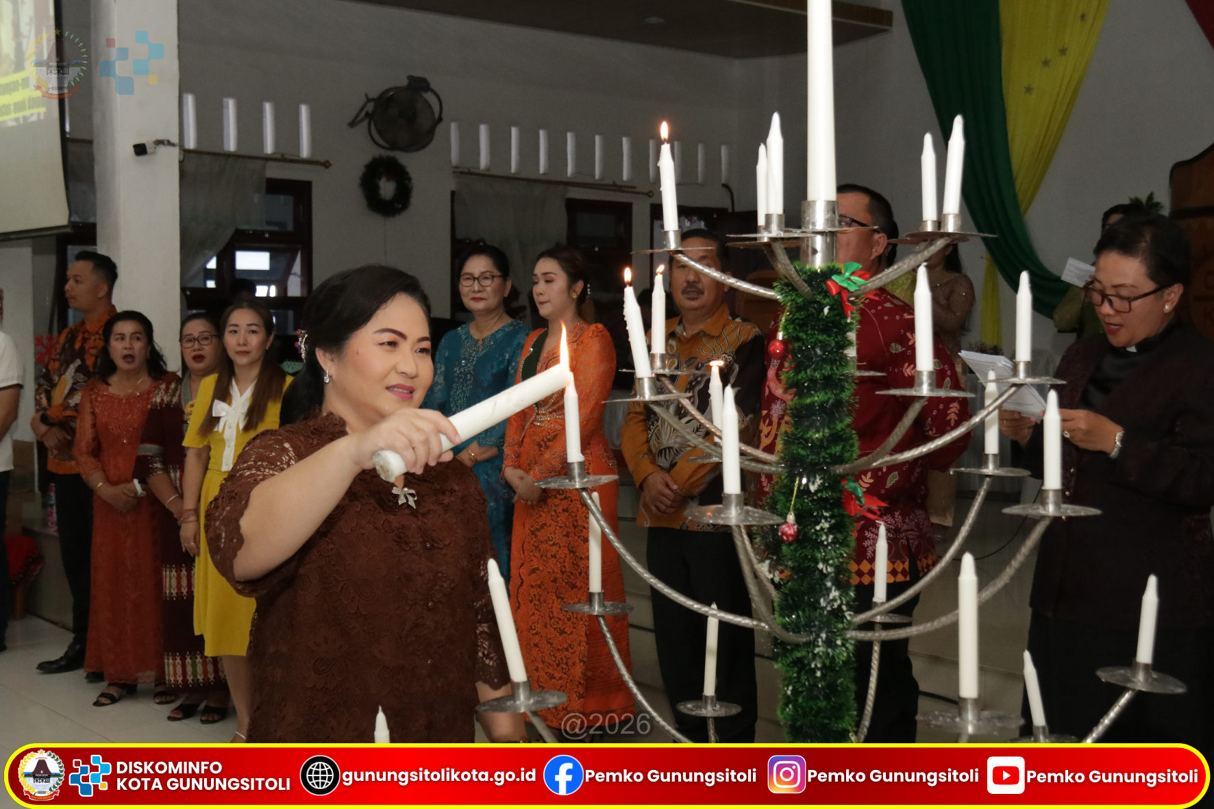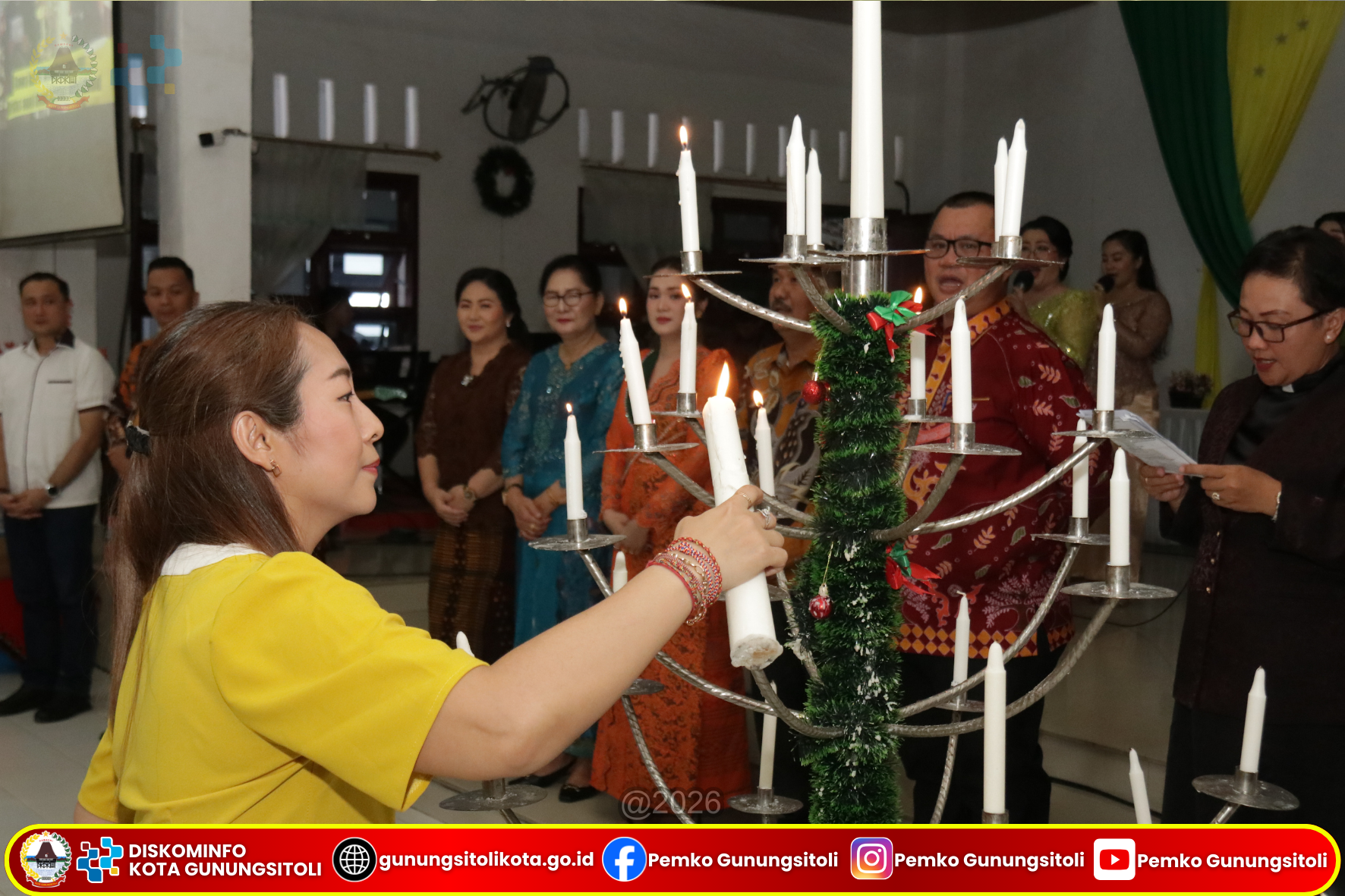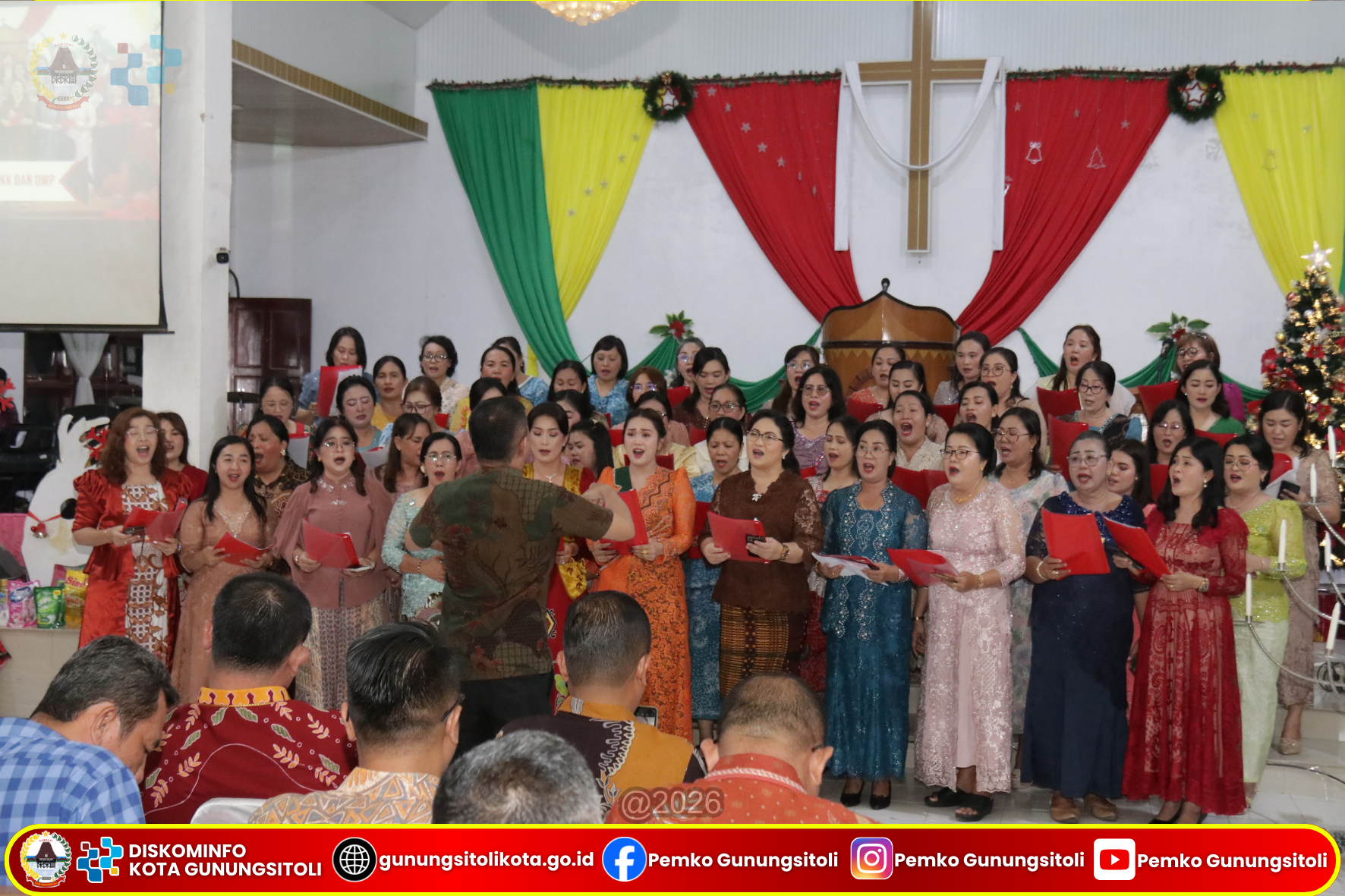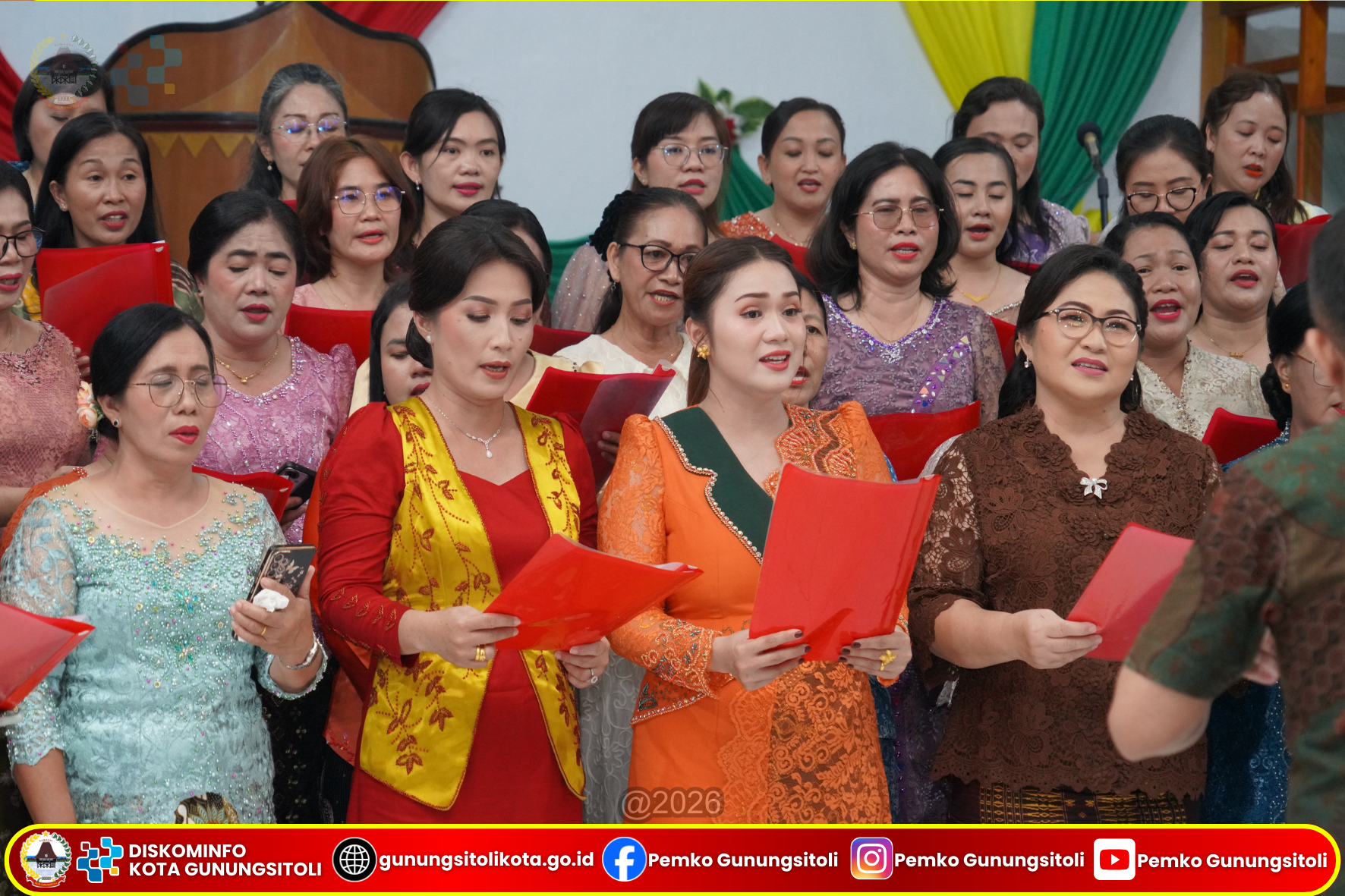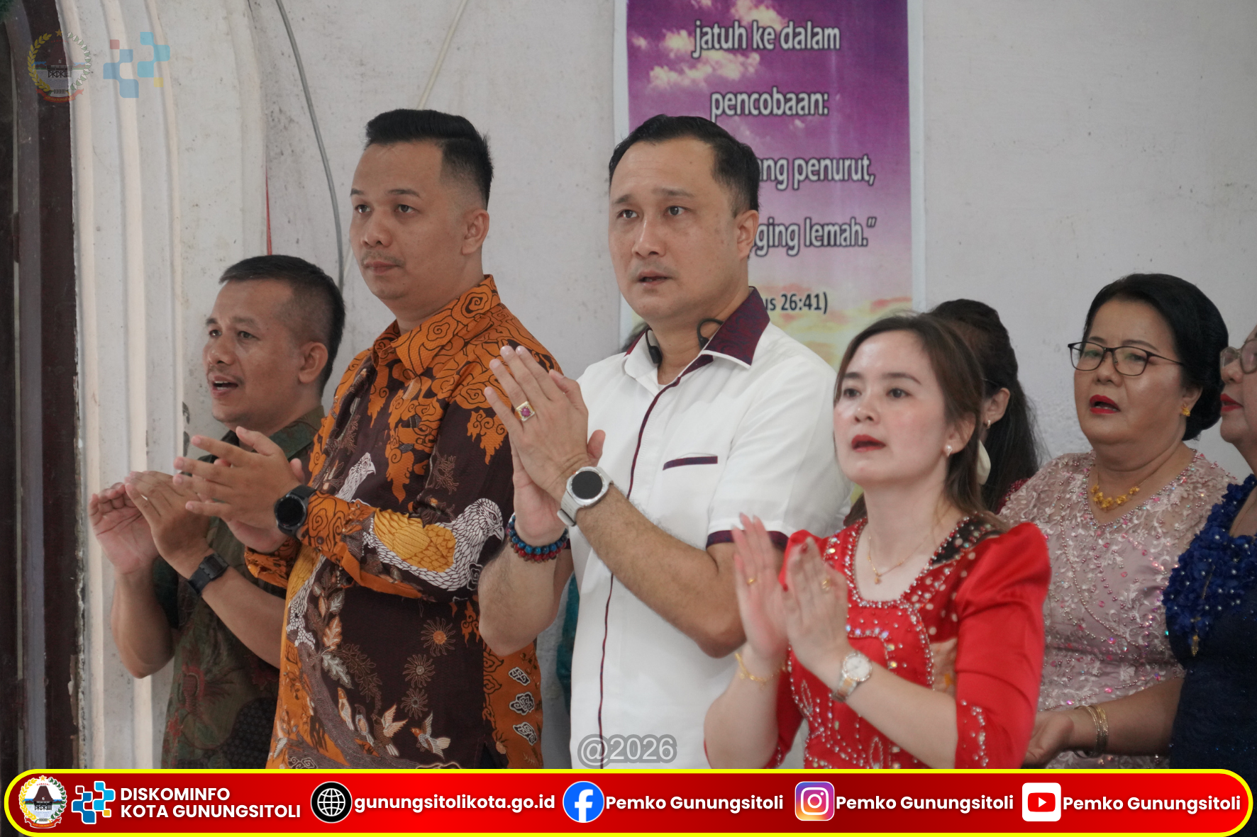Gunungsitoli, (15/1/2026) Wali Kota Gunungsitoli, Sowa’a Laoli, S.E., M.Si., didampingi Pj. Sekretaris Daerah Kota Gunungsitoli, Meiman Kristian Harefa, S.Sos., M.S.P., serta Ketua TP. PKK Kota Gunungsitoli, Ny. Veny Sowa’a Laoli, didampingi Ketua DWP Kota Gunungsitoli, Ny. Dita Meiman Harefa, menghadiri Ibadah Natal dan Syukuran Tahun Baru TP. PKK dan Dharma Wanita Persatuan (DWP) Kota Gunungsitoli yang dilaksanakan di Gereja ONKP Kota Gunungsitoli, Kamis (15/1/2026).