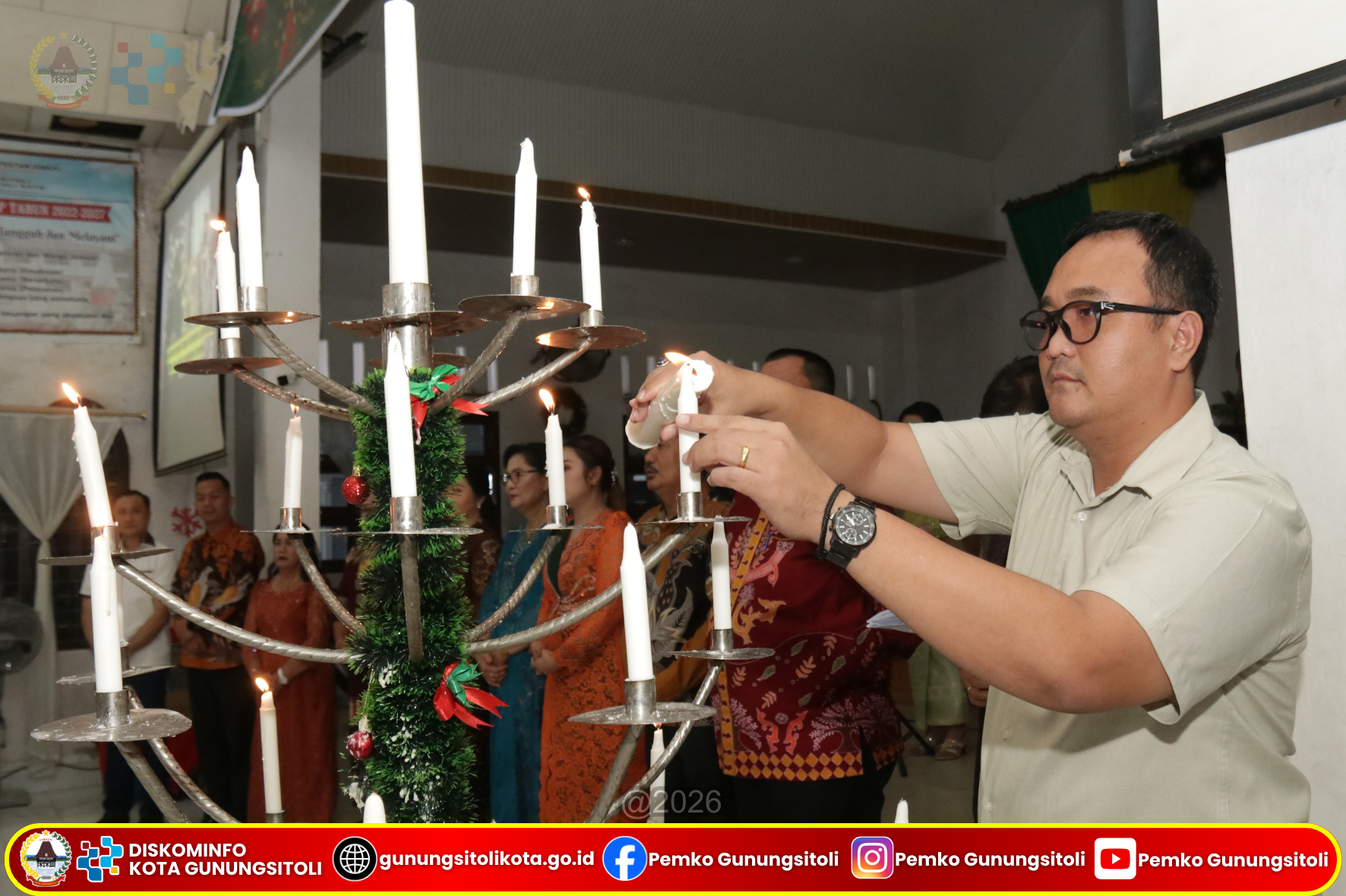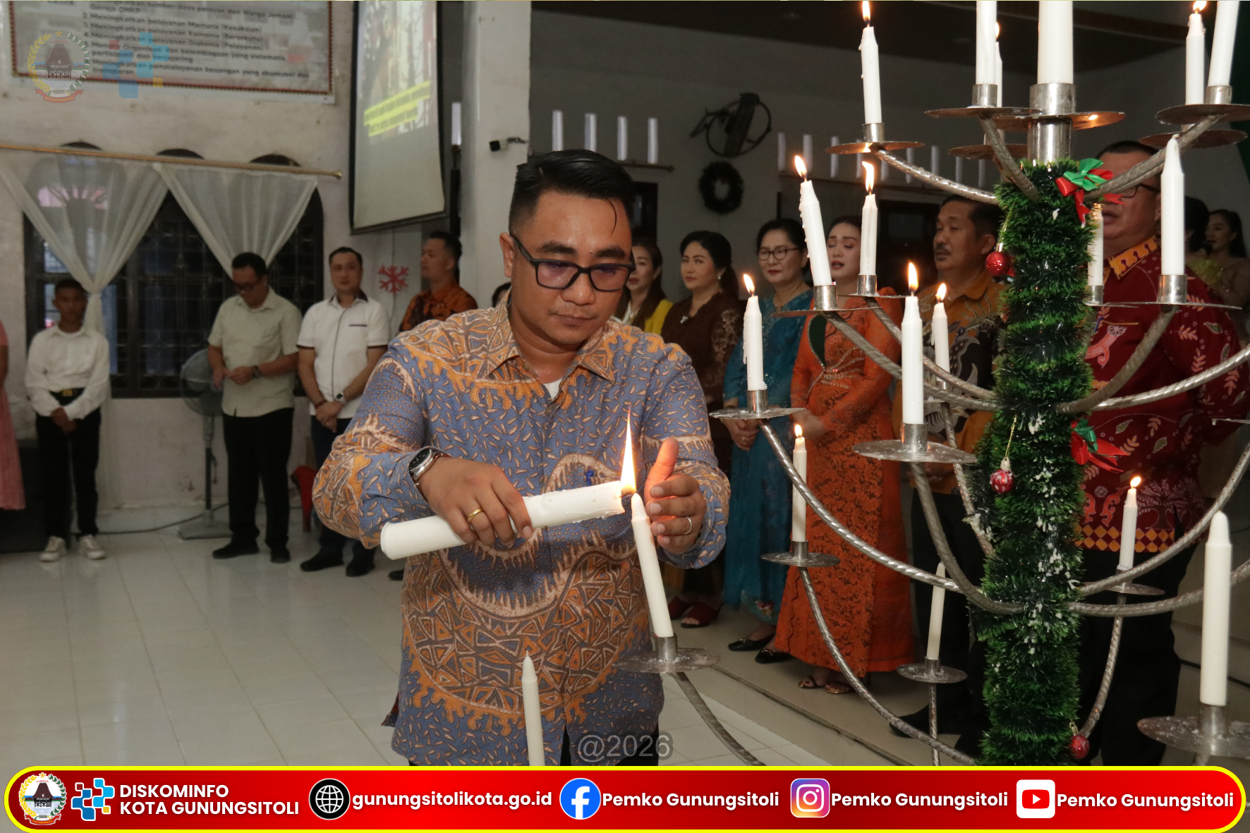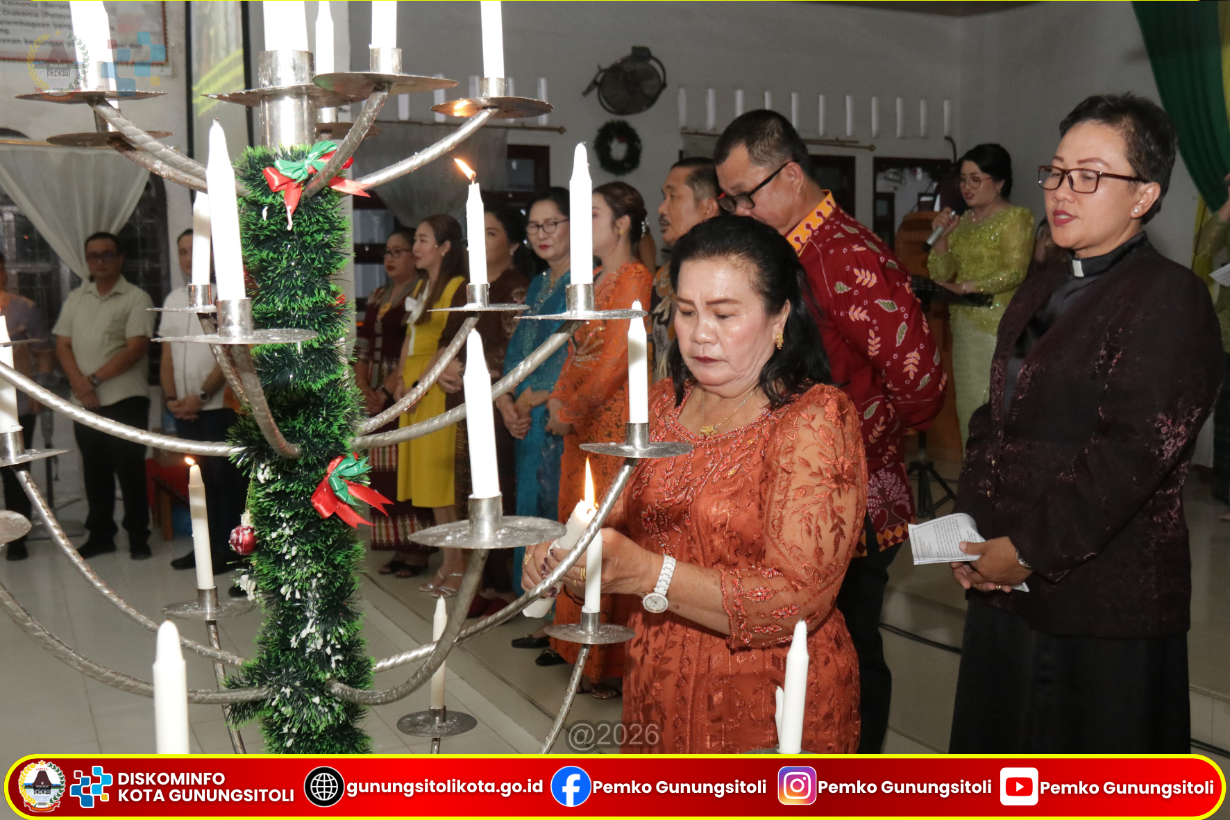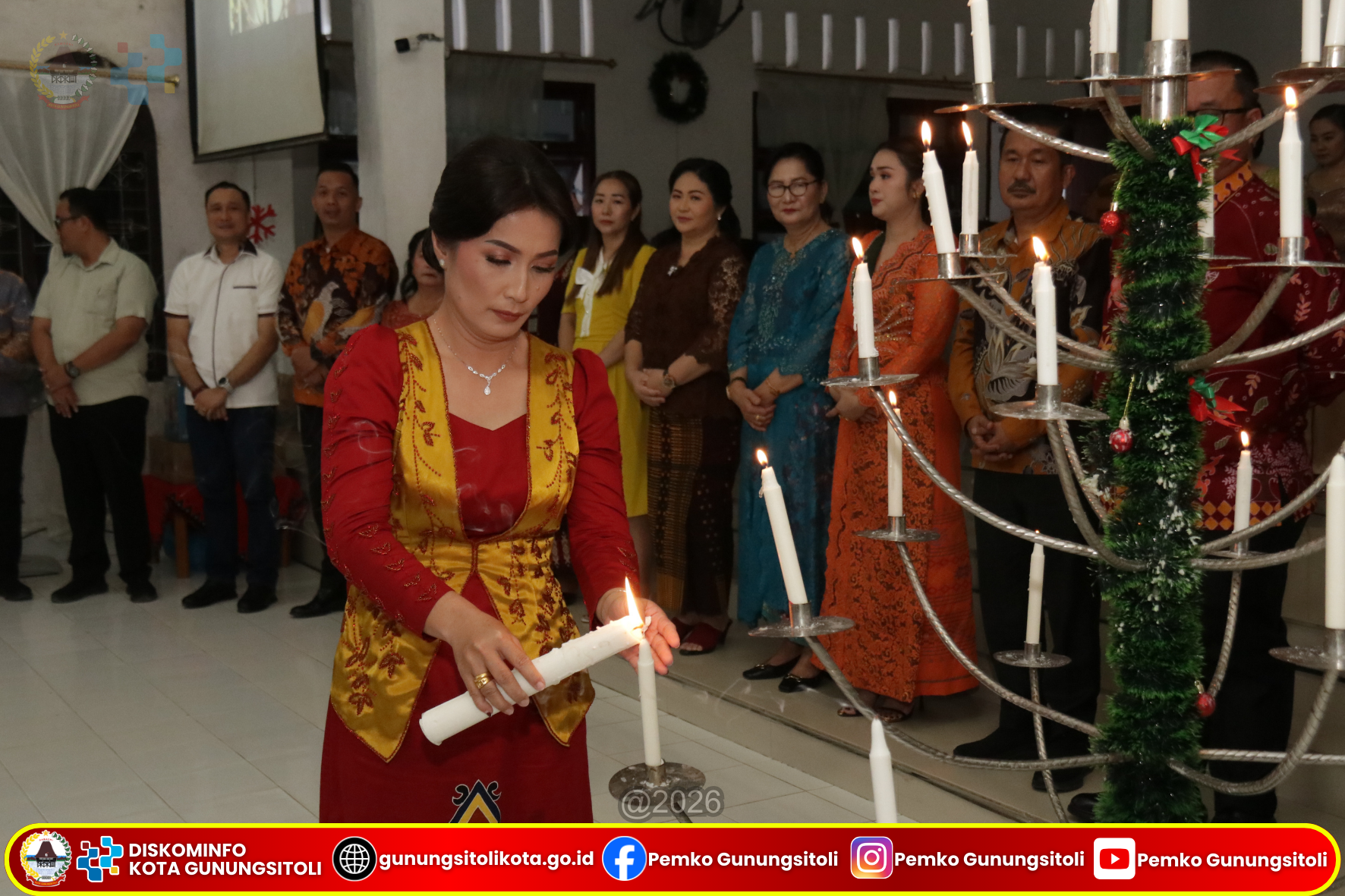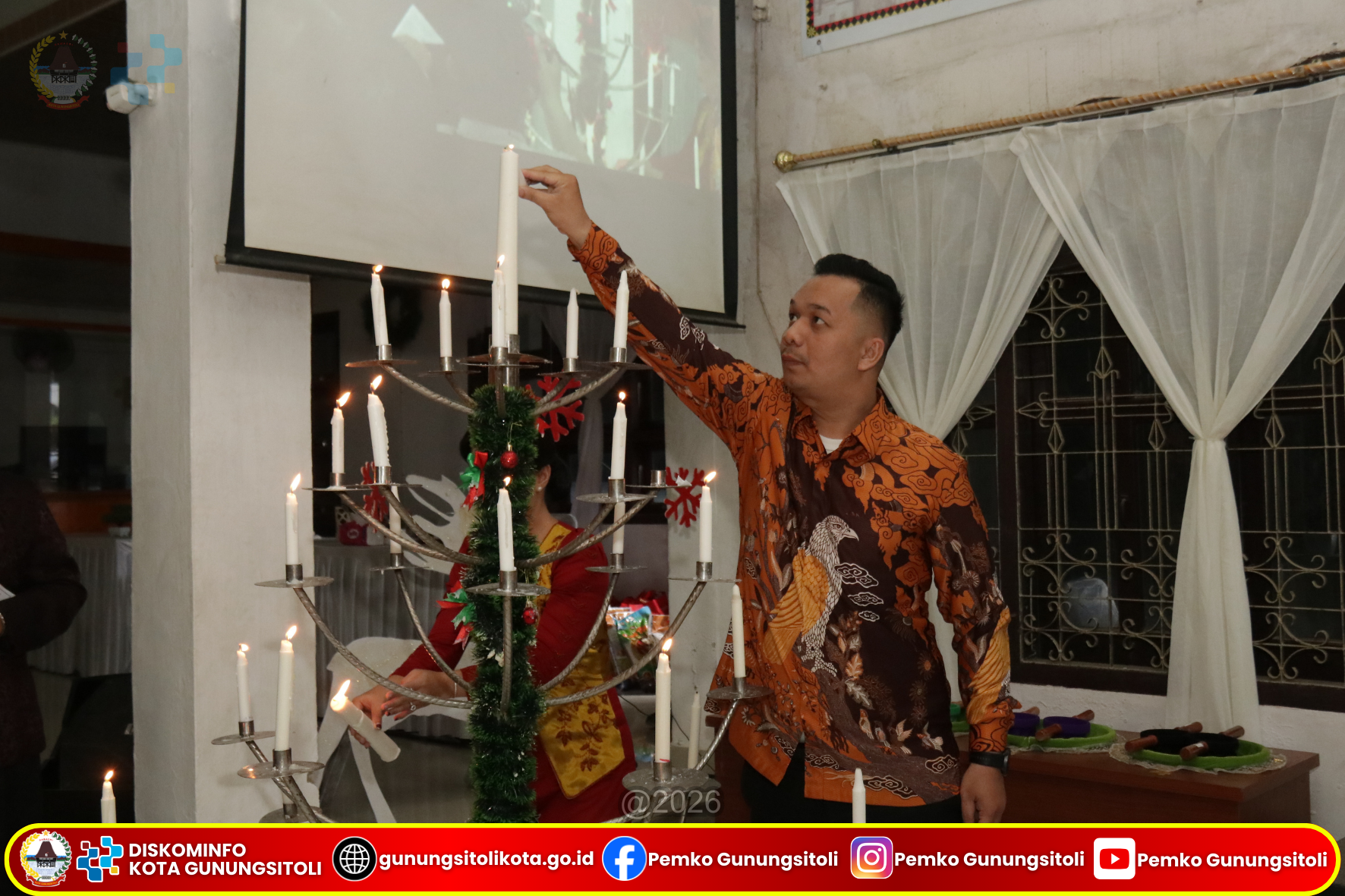 Gunungsitoli, (15/1/2026) Wali Kota Gunungsitoli, Sowa’a Laoli, S.E., M.Si., didampingi Pj. Sekretaris Daerah Kota Gunungsitoli, Meiman Kristian Harefa, S.Sos., M.S.P., serta Ketua TP. PKK Kota Gunungsitoli, Ny. Veny Sowa’a Laoli, didampingi Ketua DWP Kota Gunungsitoli, Ny. Dita Meiman Harefa, menghadiri Ibadah Natal dan Syukuran Tahun Baru TP. PKK dan Dharma Wanita Persatuan (DWP) Kota Gunungsitoli yang dilaksanakan di Gereja ONKP Kota Gunungsitoli, Kamis (15/1/2026).
