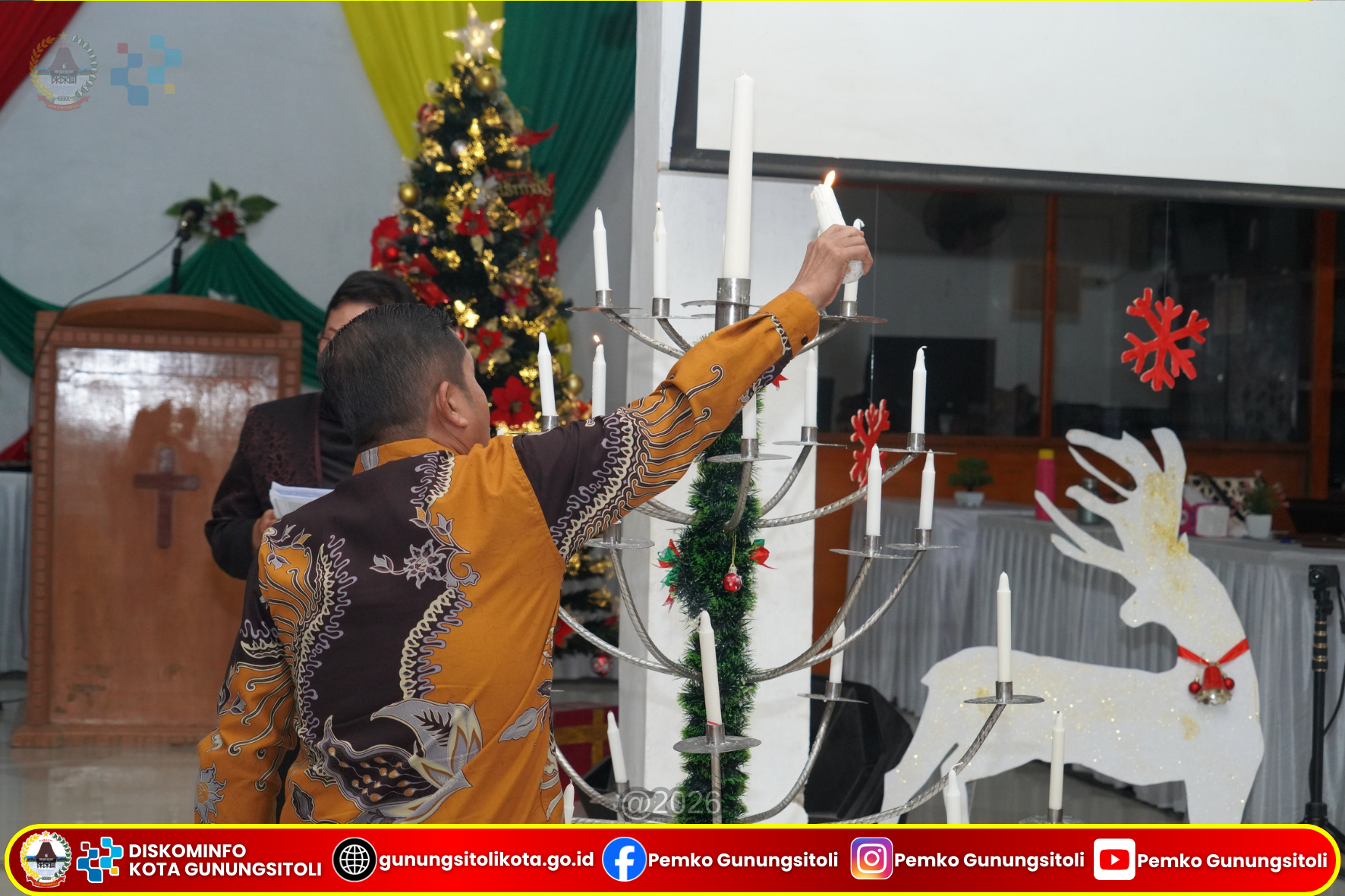 Dalam sambutannya, Wali Kota Gunungsitoli menyampaikan bahwa perayaan Natal bukan sekadar peringatan atas peristiwa di masa silam, melainkan sebuah oase yang senantiasa baru di dalam hati manusia yang merindukan kedamaian. Ia menegaskan bahwa keluarga merupakan unit terkecil namun menjadi fondasi utama bagi kemajuan Kota Gunungsitoli, dengan peran ibu sebagai “altar kasih” dalam rumah tangga. Menurutnya, apabila damai tumbuh dalam keluarga, maka akan lahir generasi yang kuat, berkarakter, dan mampu memberi kontribusi positif bagi masa depan daerah.