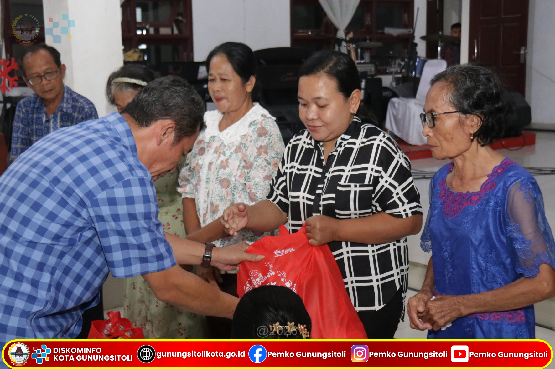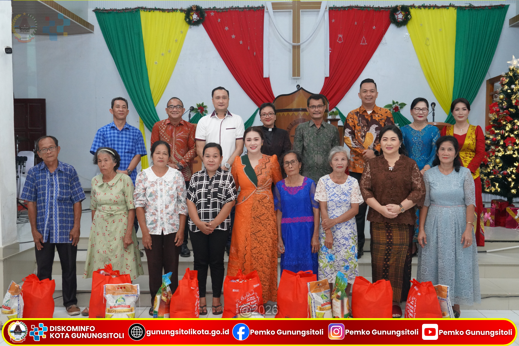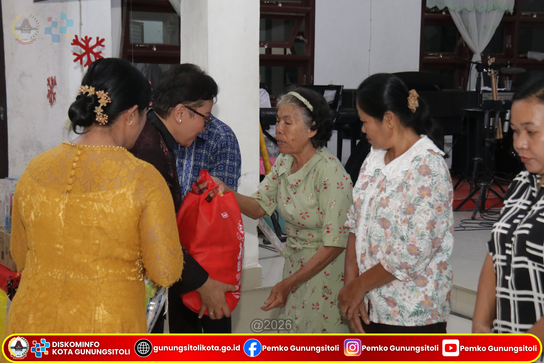 Pada kesempatan tersebut juga dilaksanakan penyerahan berbagi kasih kepada masyarakat tidak mampu yang hadir sebagai wujud nyata kepedulian sosial serta komitmen TP. PKK dan DWP Kota Gunungsitoli dalam menghadirkan semangat kasih Natal yang bermakna bagi sesama.