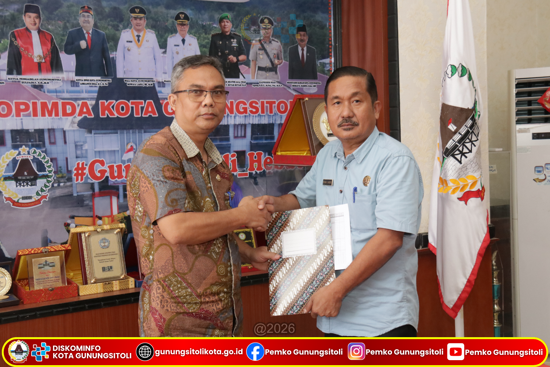 Gunungsitoli, (15/1/2026) Pemerintah Kota Gunungsitoli melaksanakan acara Serah Terima Jabatan Pimpinan Tinggi Pratama di lingkungan Pemerintah Kota Gunungsitoli sebagai tindak lanjut atas Keputusan Wali Kota Gunungsitoli Nomor 100.3.3.3-7 Tahun 2026 tanggal 7 Januari 2026 tentang Pemindahan dan Pengukuhan Pegawai Negeri Sipil dalam Jabatan Pimpinan Tinggi Pratama, berlangsung di Ruang Rapat Center Kantor Wali Kota Gunungsitoli pada Kamis (15/1/2026).