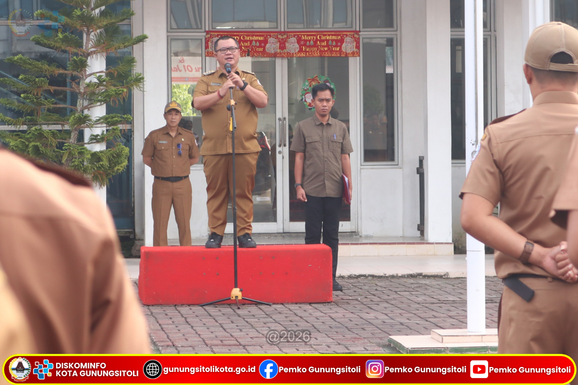 Gunungsitoli (19/01/2026) Pemerintah Kota Gunungsitoli melaksanakan Upacara Bendera Hari Senin yang digelar di halaman Kantor Wali Kota Gunungsitoli. Upacara berlangsung dengan khidmat dan tertib, diikuti oleh Pj. Sekretaris Daerah Kota Gunungsitoli, para Staf Ahli, Asisten, Pimpinan Organisasi Perangkat Daerah (OPD), para ASN, CPNS, serta tenaga non-ASN di lingkungan Pemerintah Kota Gunungsitoli, Senin (19/01/2026).