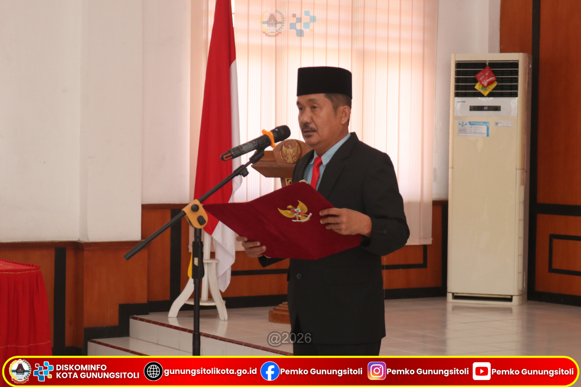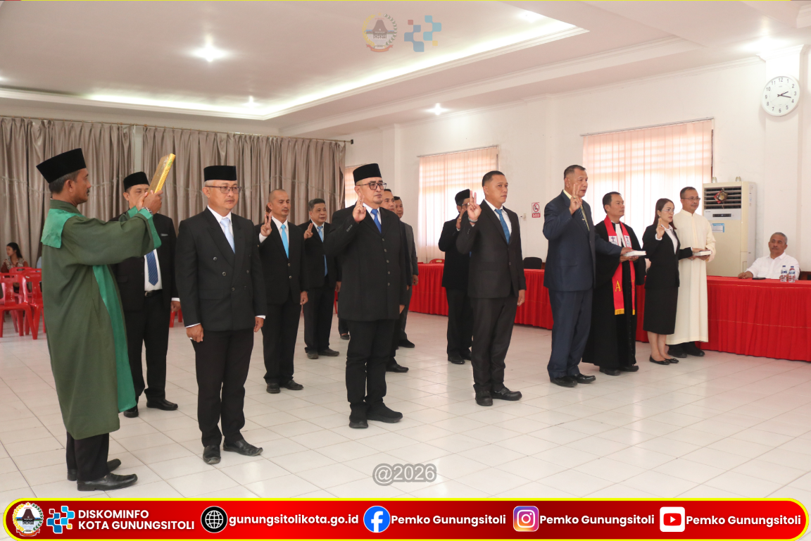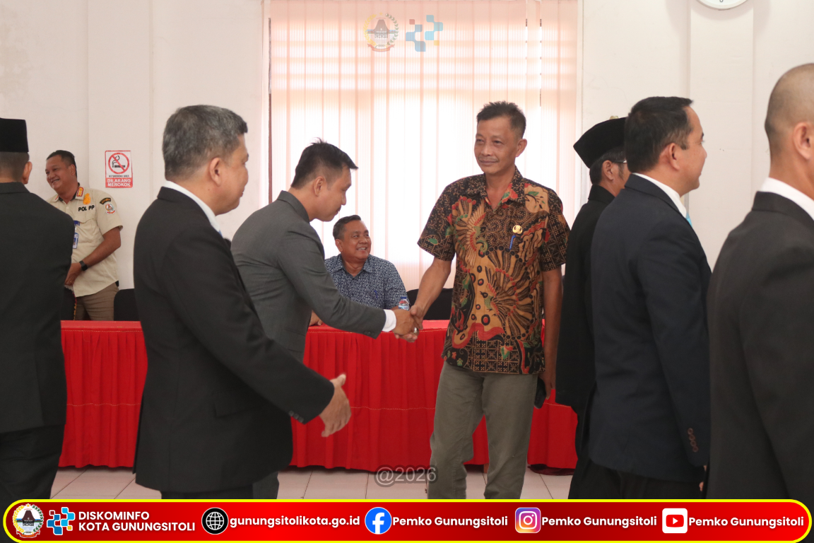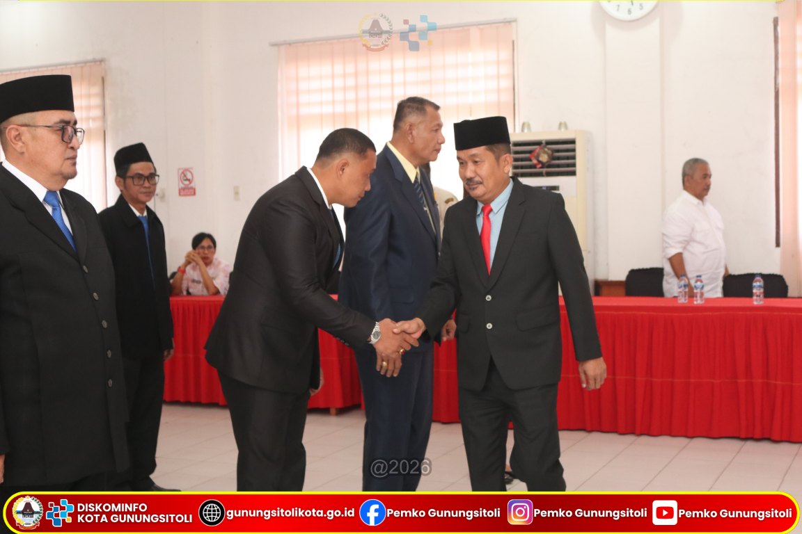 Gunungsitoli (15/01/2026) Wali Kota Gunungsitoli yang diwakili oleh Pj. Sekretaris Daerah Kota Gunungsitoli Meiman Kristian Harefa, S,Sos., M.S.P melantik sejumlah Pegawai Negeri Sipil (PNS) pada Jabatan Administrator dan Jabatan Pengawas di lingkungan Pemerintah Kota Gunungsitoli. Kegiatan pelantikan dan pengambilan sumpah/janji jabatan tersebut berlangsung di Ruang Rapat II Kantor Wali Kota Gunungsitoli, Kamis (15/01/26).